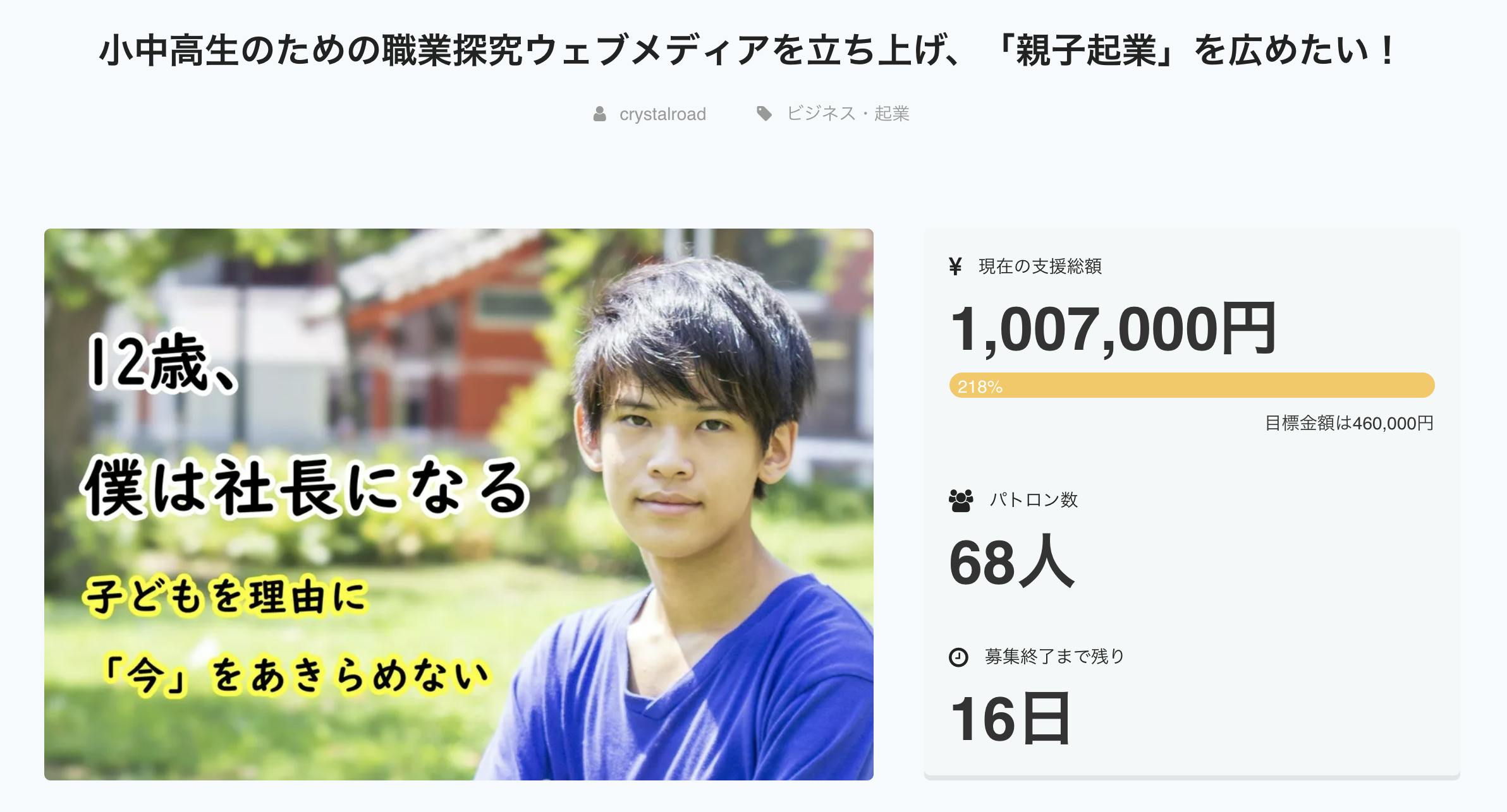昨日、キャンプファイヤーの支援金が100万円を超えました。こんなにたくさんの金額を支援していただき、とても嬉しいです。支援したのに何もやっていない、と言われないように頑張りたいと思います。