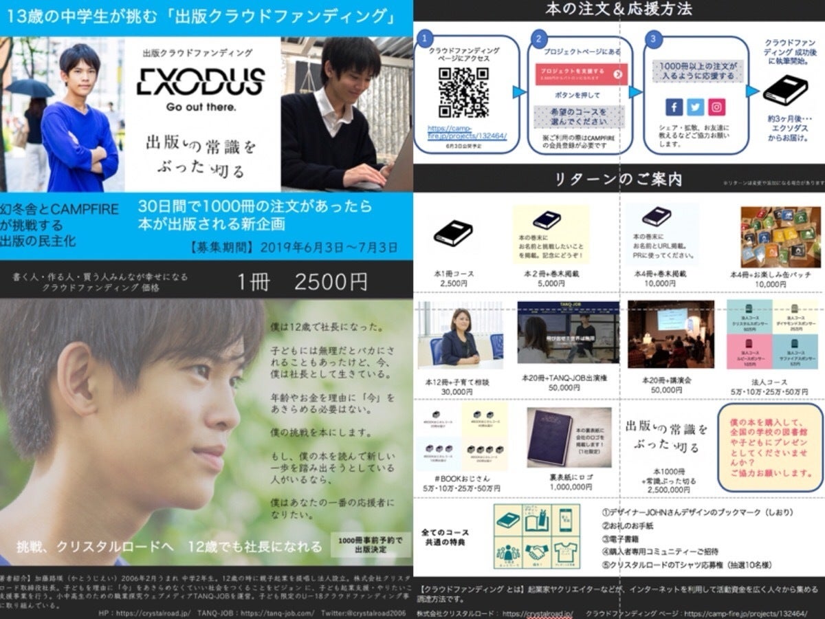 6月3日から出版を目指し1000冊250万円の支援を集めるクラウドファンディング EXODUSに挑戦します。EXODUSもこのCAMPFIREのページで見ることができますので、プロジェクトがスタートした時は見て欲しいです。