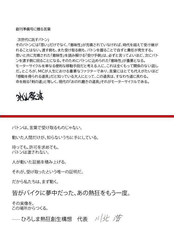 2026/01/20 18:53ご支援頂けました。有難うございます。この支援を記録として残す為の雑誌ニリンジャノHIROSHIMA創刊号を発行いたしますが、その前にニリンジャノHIROSHIMA創刊準備号を2月15日に発刊いたします。電子版PDF形式無料配布の予定です。ご希望者にはこちらに支援のお礼としてお名前(ニックネーム可)を掲載させて頂きます。片山敬済様からの寄稿文をはじめ、48ショウヤに関する当時の関係者しか知らない話、前田淳(マン島TT挑戦者)の友人による当時の暴露??話 またFBで活発に活動されているバイク愛好家の方々のコラムを始め無料誌とは思えない内容です(創刊号のネタ無くならない?)皆様のさらなるご支援をお願い致します。 もっと見る