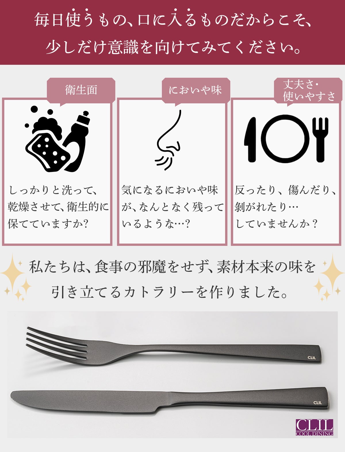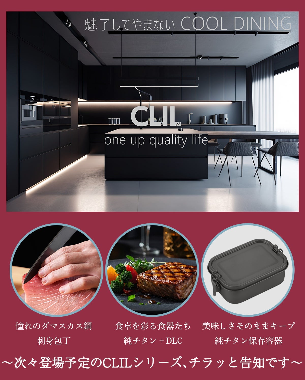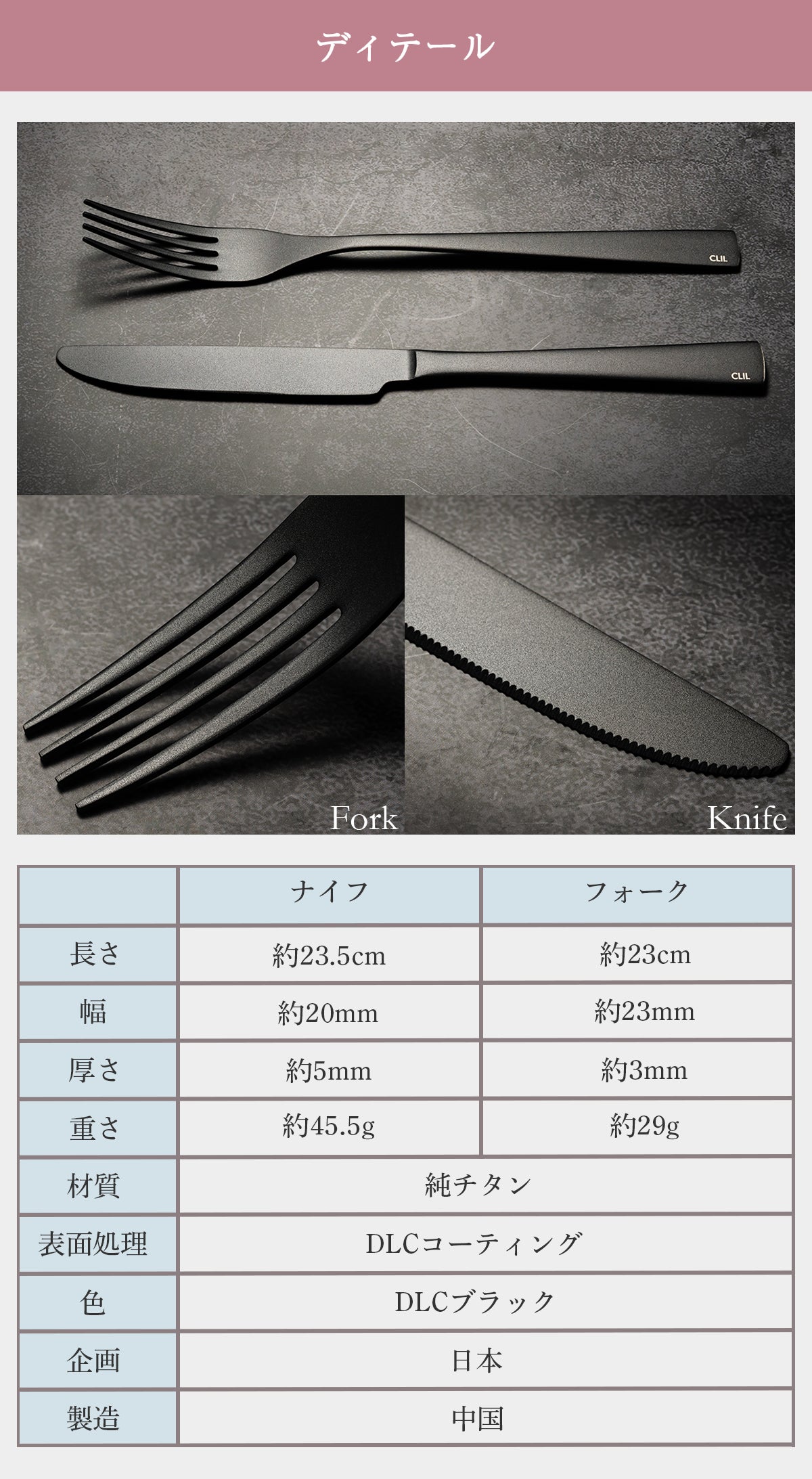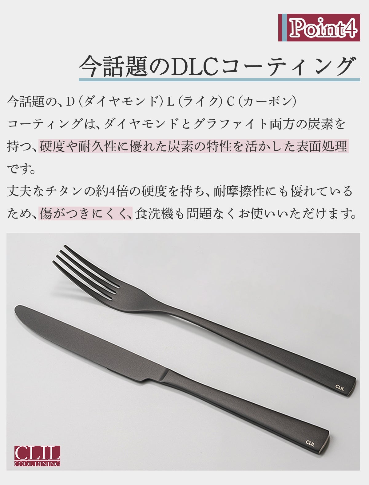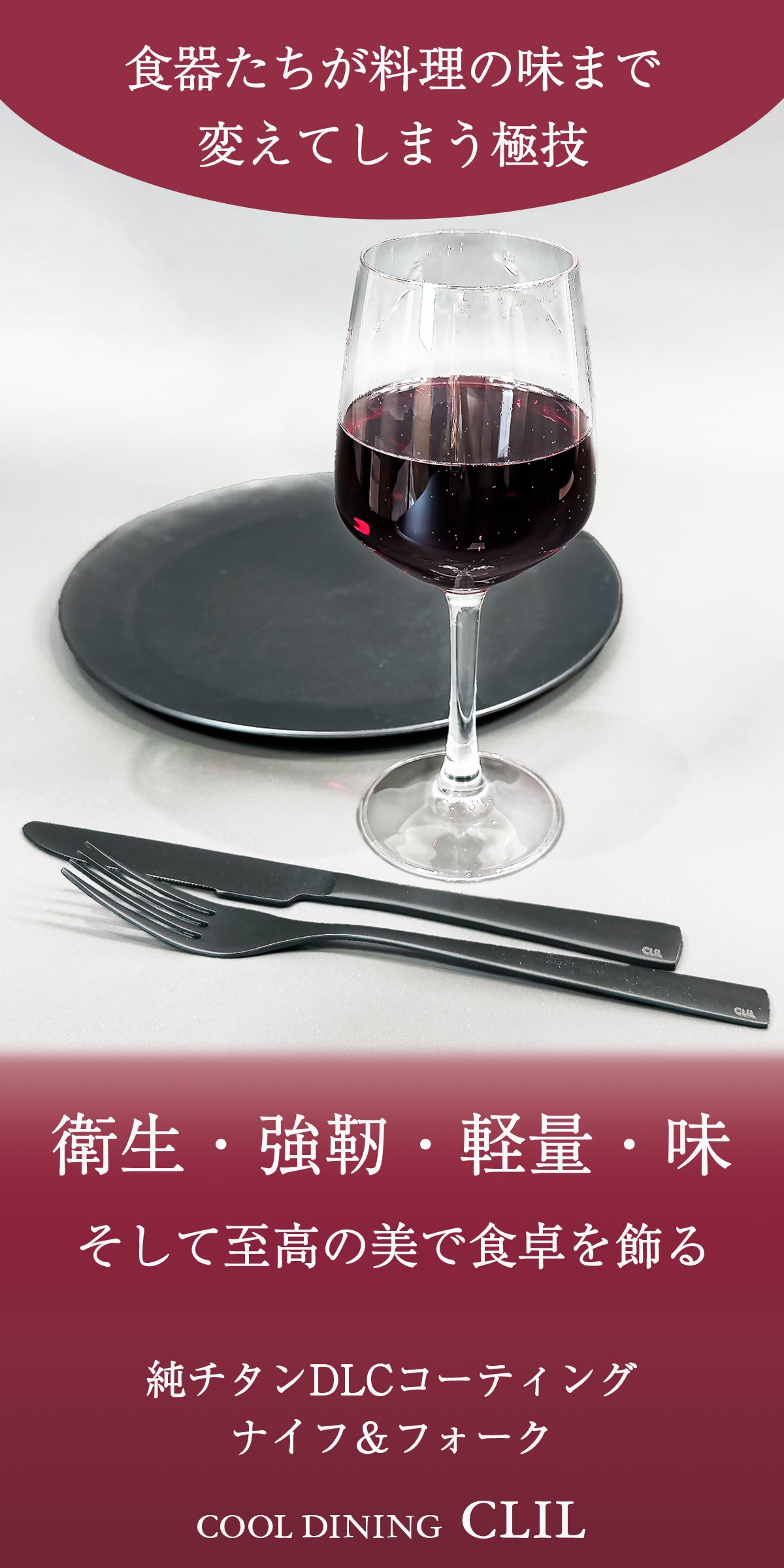 今回は、COOL DINING CLILから、第3弾 純チタンDLCコーティングの「ナイフ&フォーク」のご提案です。