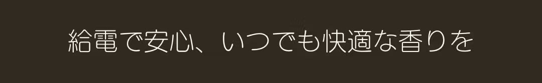 Type-C給電式で設計されており、充電式ではなく、給電しながら使用するタイプです。これは、安全性を最優先に考慮した結果です。バッテリーを内蔵しないことで、長時間の使用でも過熱や火災のリスクを抑え、安心してお使いいただけます。常に安定した電源供給が可能なため、どんな場面でも快適に香りを楽しむことができます。