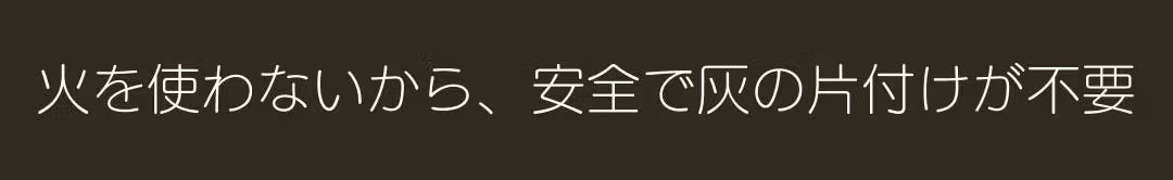 火を使わないため、安全性が高く、火災の心配がありません。さらに、灰の片付けも不要で、お手入れが簡単。忙しい毎日でも、手間なく心地よい香りを楽しめます。