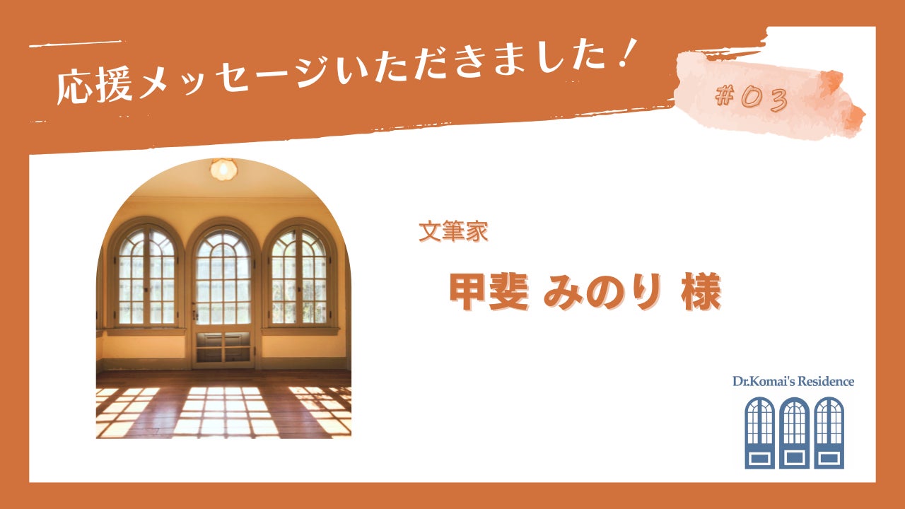 文筆家・甲斐みのり様より応援メッセージをいただきました
