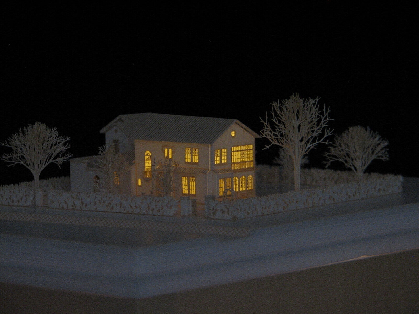 1/300スケールの模型で、4棟の建物(主屋・離れ・付属屋・温室)とお庭、外構まで再現された、とっても精巧な模型です。