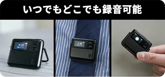 「AuralAI」は電源オンなど複雑な操作は一切不要、録音したいときは本体の録音ボタンを上へスライドするだけ!いつでもどこでもワンタッチで録音を開始できるので、重要な会話からふと思いついたアイデアまで逃さずに記録できます。録音のチェックや再生なども必要最低限の操作で行うことが可能なので、初心者でも簡単に扱えます。