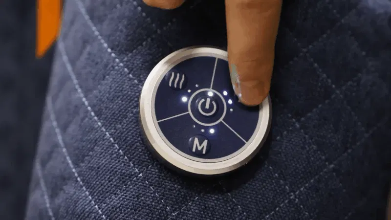操作も簡単、ブーツ側面のコントロールボタンを押すだけ!充電式なのでそのまま歩いて移動も出来ます。