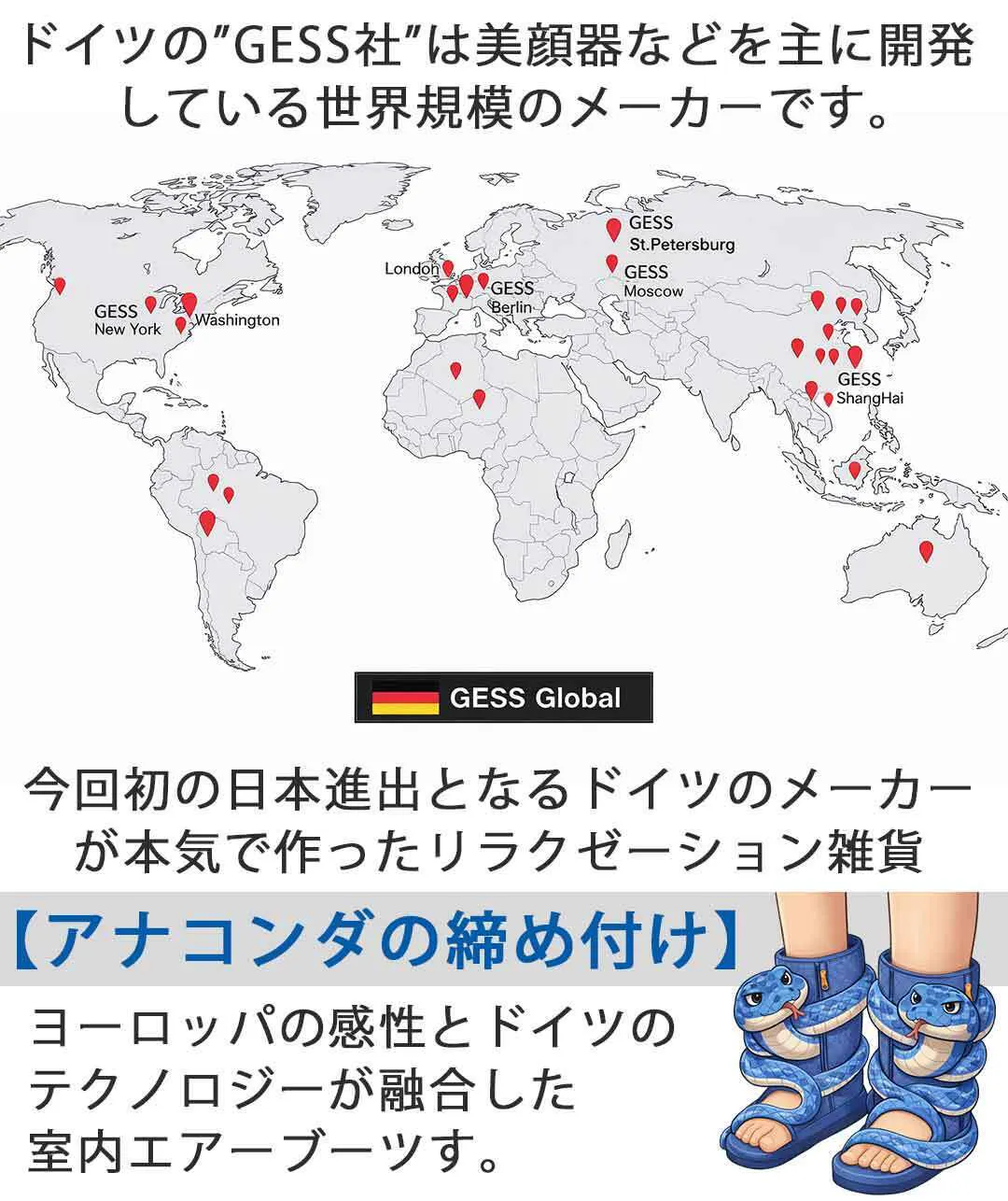 【アナコンダの締め付けは】そのGESS社が本気で造ったリラクゼーション雑貨になります。