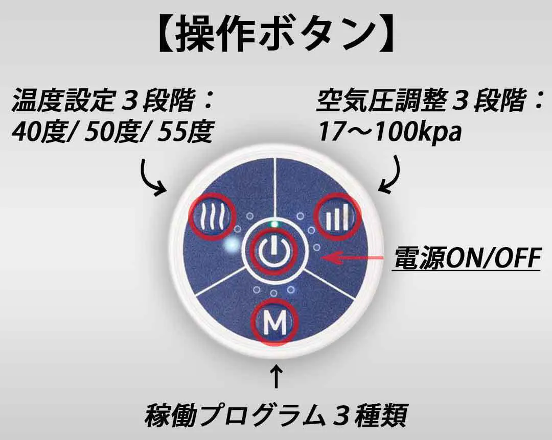 ・空気圧調整ボタン:17〜100kpa3段階