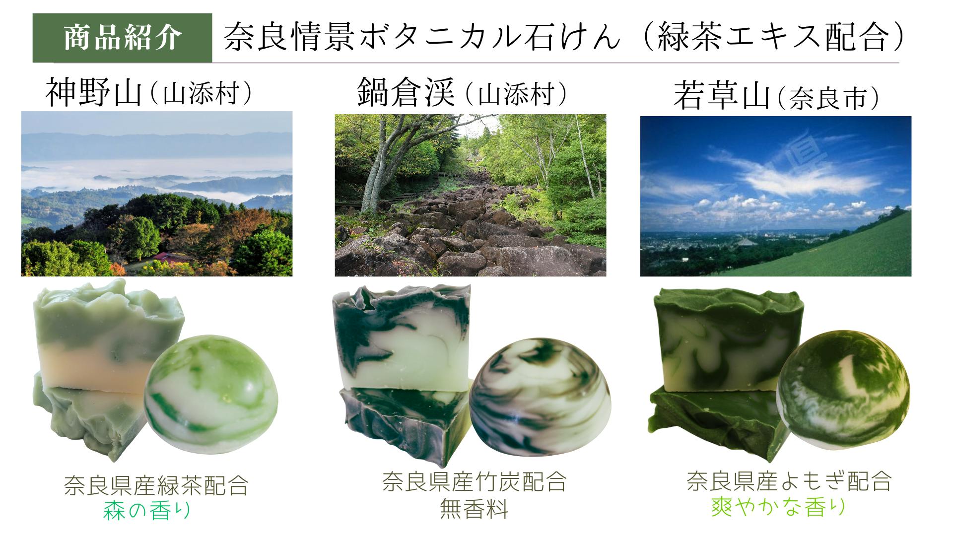 ①奈良情景ボタニカル石けん(緑茶エキス配合)