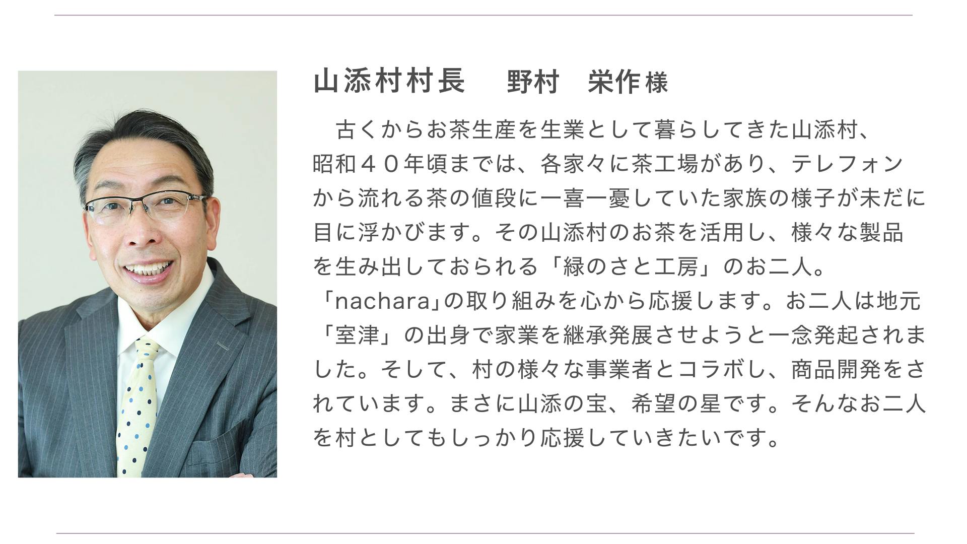 この商品を通して、皆さまにお披露目できることにより、大和茶を知っていただき、この小さな取り組みから大和茶の新たな未来へと繋がることを願っています。