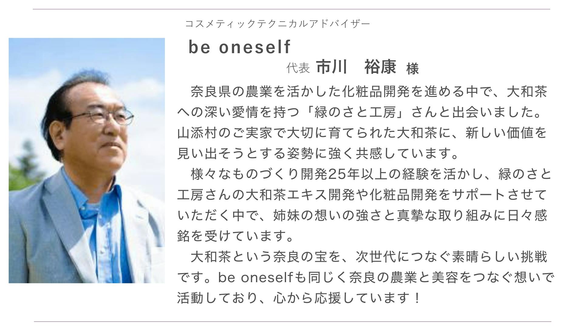 この緑茶エキスは実家の茶葉を原料とし、コスメティックテクニカルアドバイザーのbe oneself 市川裕康様に開発をお願いしました。