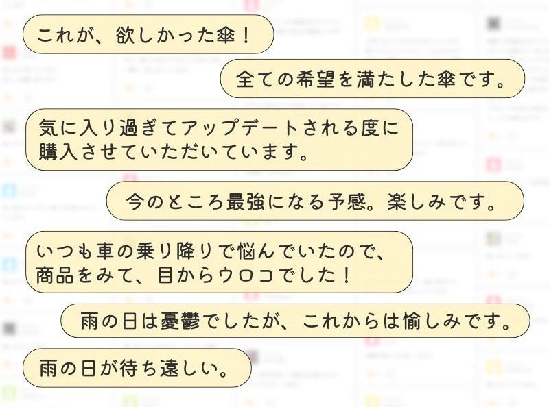 2026/03/20 12:00支援者のみなさまいつもプロジェクトの応援ありがとうございます。本日12時より雨×暑×風対応の120㎝ワイドな傘【NURASAN-J27Ws】の第3弾限定販売がはじまりました!累計1,280万円、のべ1,300名を超える方々にご支援いただいたシリーズ最強の晴雨兼用傘!年々暑くなる夏、急に降り始めるゲリラ豪雨に突風。あなたも悩まされていませんか!?そんな場面も“この1本”で解決。職場や車に予備として、バッグに忍ばせていざというときに、メインの傘としてももちろんお使いいただける1本。NURASANシリーズをご愛用している方の声もご紹介しますのでぜひチェックしてください!4色展開でお待ちしております。▶【販売会場はこちら】>>レビューコメントはこちら もっと見る
