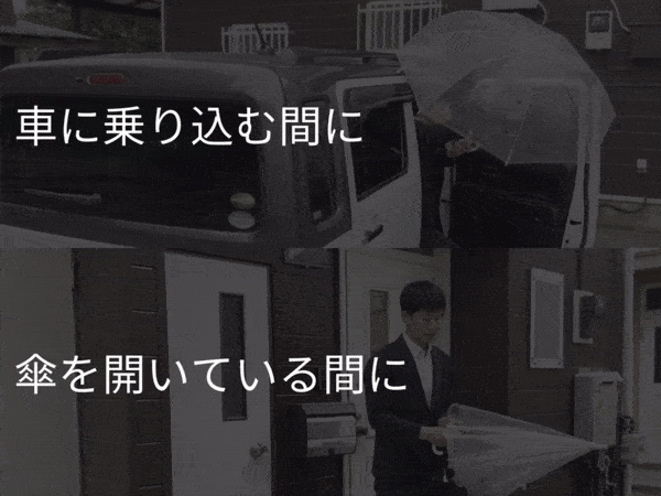 傘を閉じた瞬間にドアをしめれば、濡れるスキをつくりません。
