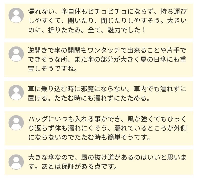逆折り式の傘は縮めたときに生地が広がりやすく、手で丸めてたたみにくい点が欠点でした。