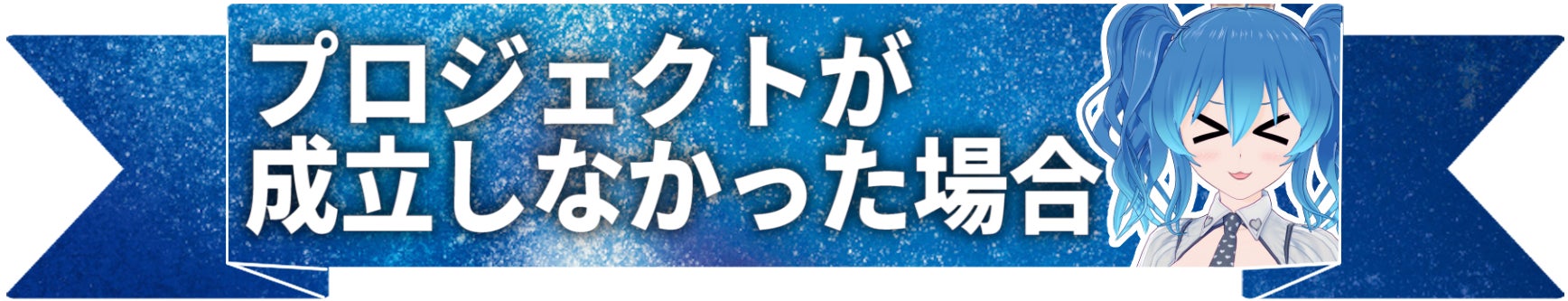 A:このプロジェクトはAll-or-Nothing方式で実施します。募集期間内に目標金額に到達しなかった場合はプロジェクト不成立となり、リターンの履行はございません。プロジェクト不成立の際、クレジットカードでご支援いただいた場合は引き落としが行われません。コンビニ払いの場合はご登録いただいた返金用銀行口座に入金されます。詳しくはパトロン様向けの「よくある質問」をご確認ください。