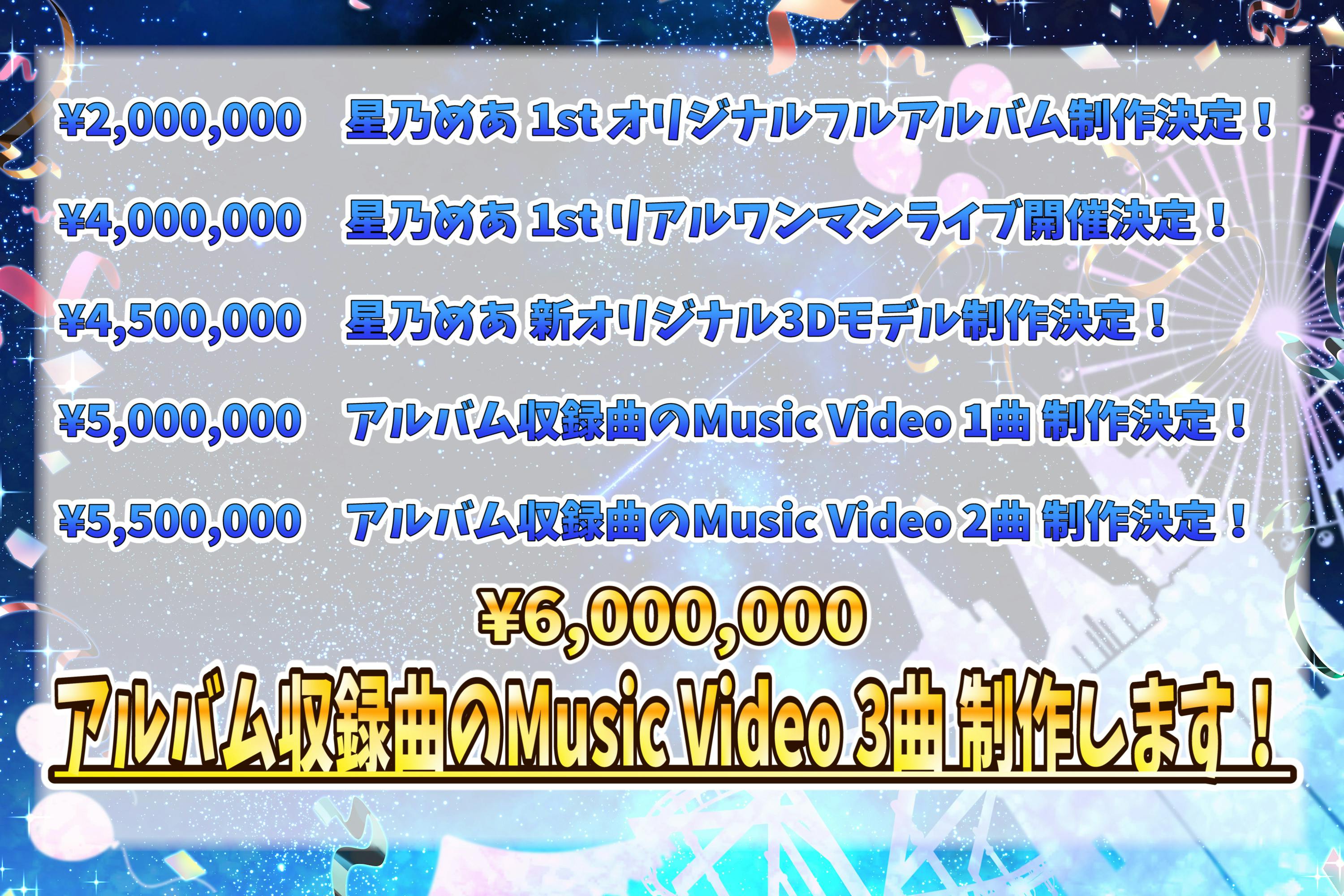 400万円達成で『星乃めあ初のワンマンライブ』を開催します!