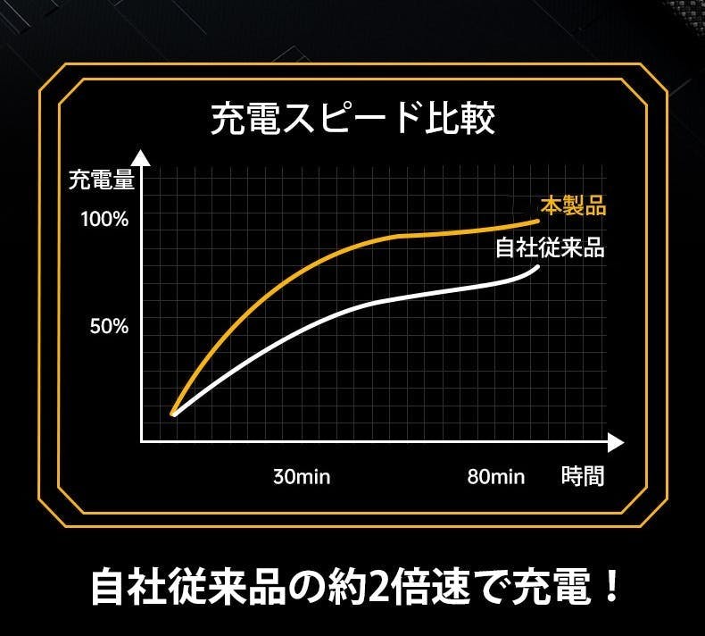 低温制御システムを搭載しているため、充電中の温度上昇を自動で抑えられる上、長時間の使用でも発熱が少なく、常に安定した電力供給を維持します。