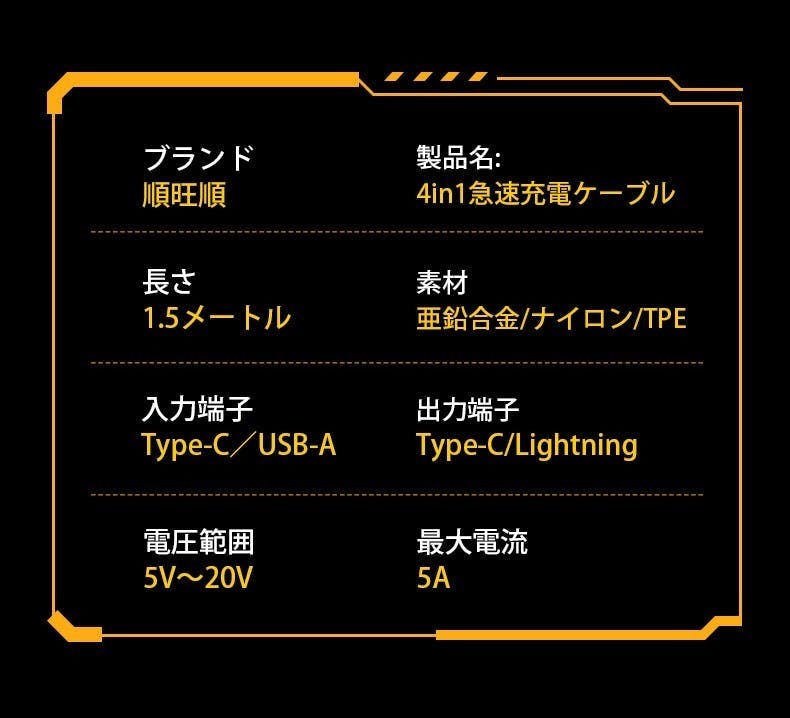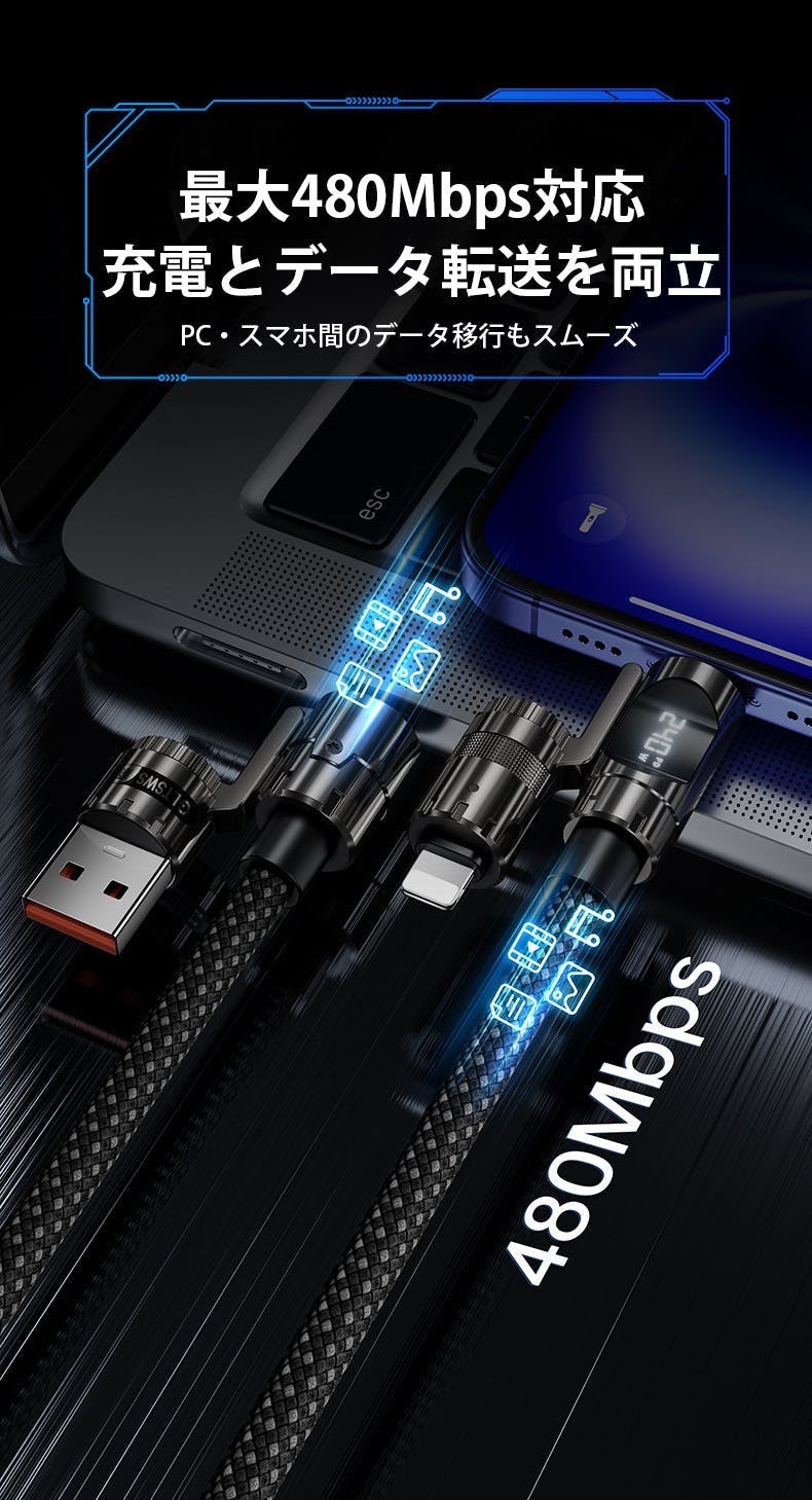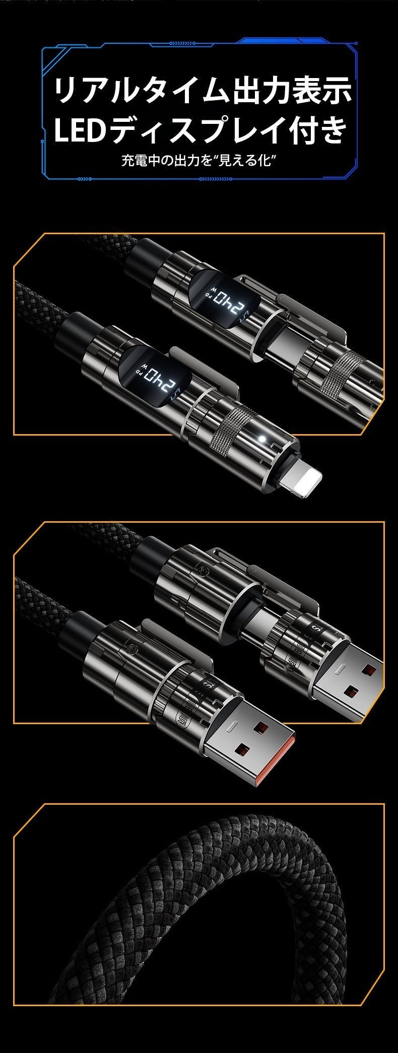 本製品は4種類の端子を1本に集約しているため、スマホ・ノートPC・タブレット・ゲーム機まであらゆるデバイスをこれ1本で充電でき、複数のケーブルを持ち歩く手間から解放されます。
