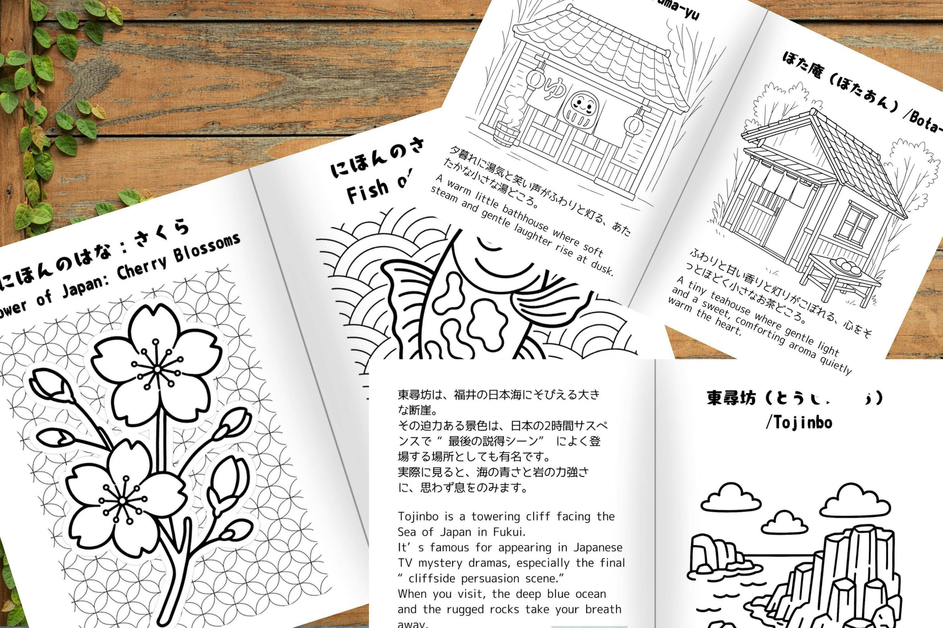 ※イメージとして一部カラーで掲載していますが、実際のぬりえはすべてモノクロです。