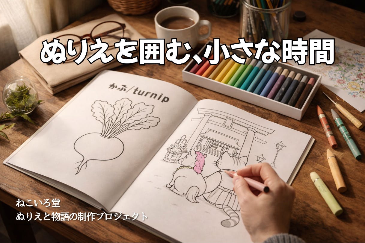 「それが、ぬりえ?」「出版?」そう思われるかもしれません。けれど、ねこいろ堂という名前のもとで、ほっこりとした空気や時間の流れ、人の気配を感じられるノンフィクションの空間は、少しずつ生まれ始めていると感じています。