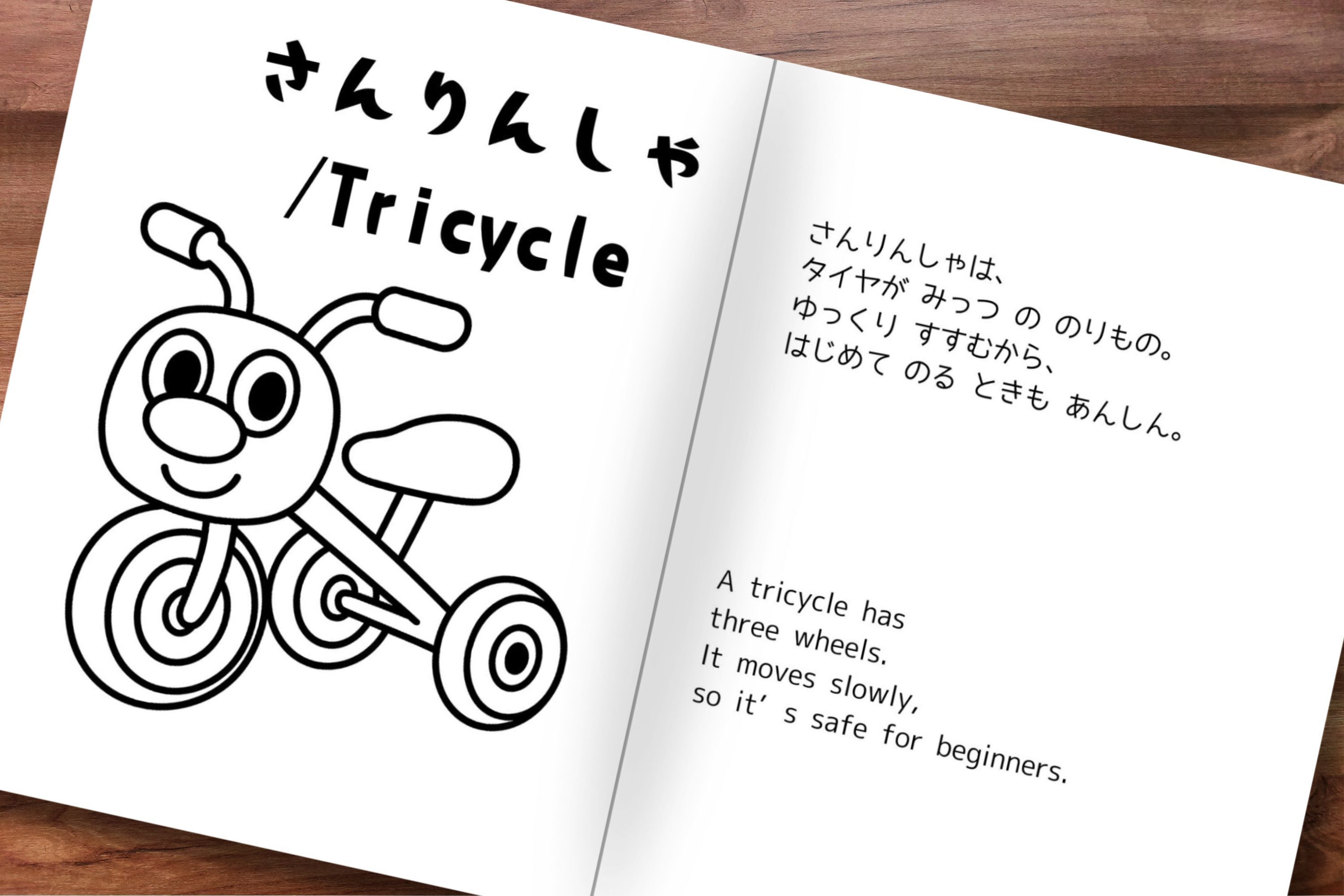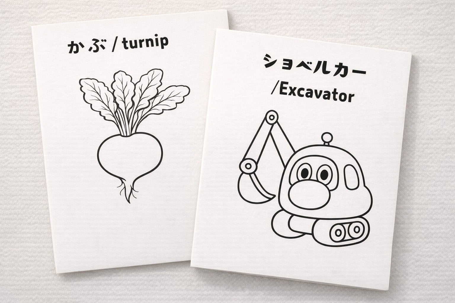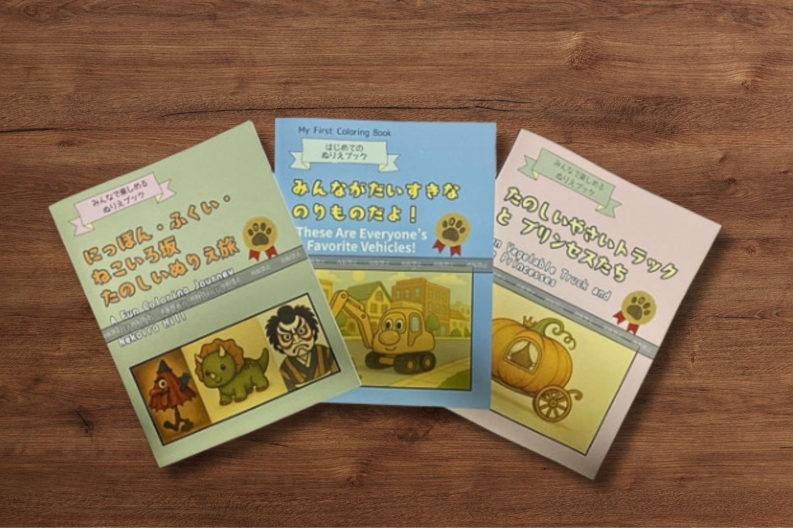 なお、どのぬりえも、日本語と英語表記になっており、遊びの中でことばにも触れられる構成にしています。
