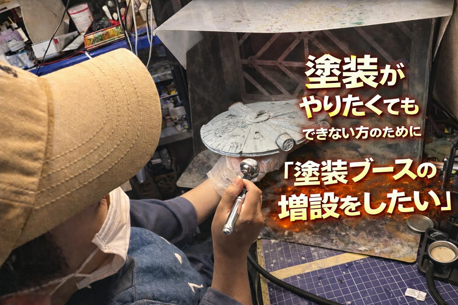 今までは、制作ブースが狭く、4人5人程しか入れなかったんです。だんだん利用者が増えてきまして、静岡市内よりも市外、県外の方が多く、具体的には、塗装したいお客様が増えまして、当時は一機しか塗装ブースも無かったので、順番待ちなどちょっと大変でした。家だとお母さんや家族に怒られるちゃうお父さんやお子さん。そういう方々が増えました。その為、もっとプラモデル制作部屋を広くして、塗装ブースを増設し、より充実したプラモデル制作室を提供することで、静岡の模型文化をさらに広めていきたいと思っています。これにより、模型製作の魅力をより多くの方に知っていただき、地域の文化振興にも貢献したいと考えています。
