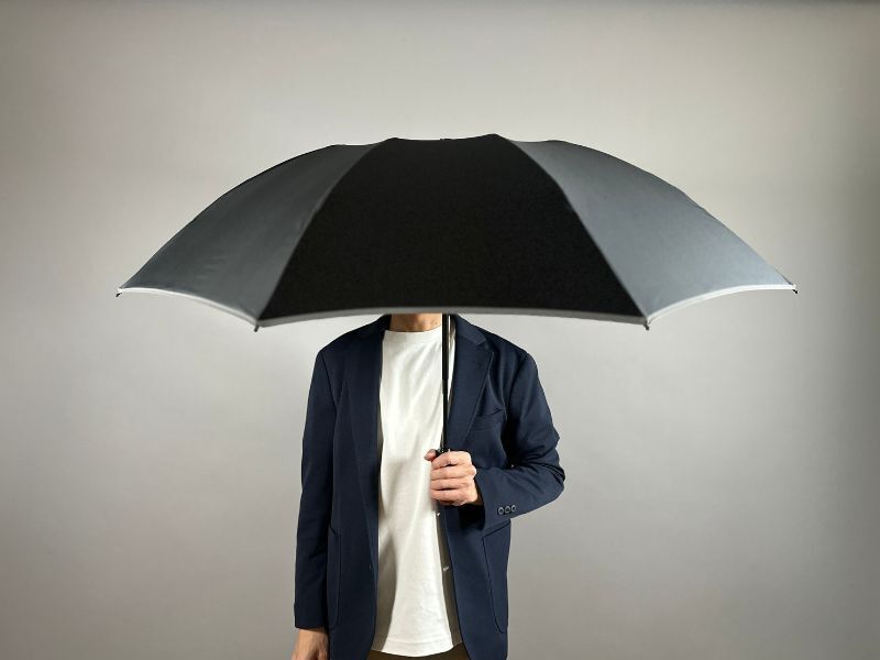 そこで傘の直径を大きめの102cmに。男性の肩幅の2倍以上のサイズにすることで全身をしっかりカバーします。