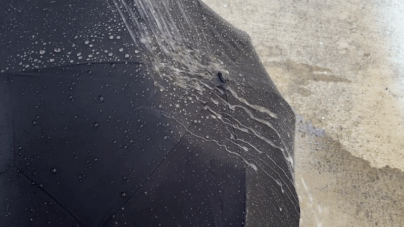 ゲリラ豪雨のような激しい雨の日は、傘にあるわずかなすき間から雨粒たちが侵入を試みてきます。