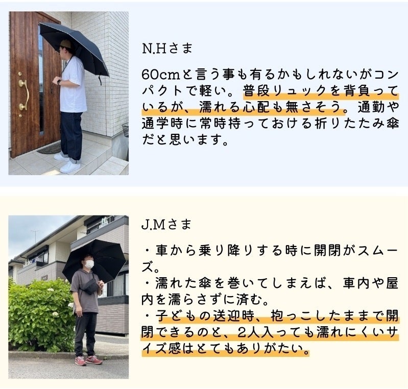 製品が届いたら、手に取り、雨が降ったら実際に使って公園まで散歩してみてください。