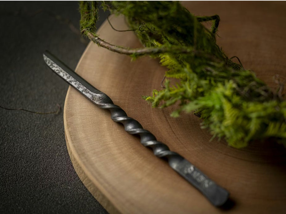 ナイフを手で持つ部分が特徴的で、ねじれ加工を施しており美観と握りやすさを両立させたハンドルとなっています。