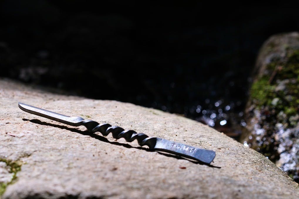 ナイフを手で持つ部分が特徴的で、ねじれ加工を施しており美観と握りやすさを両立させたハンドルとなっています。