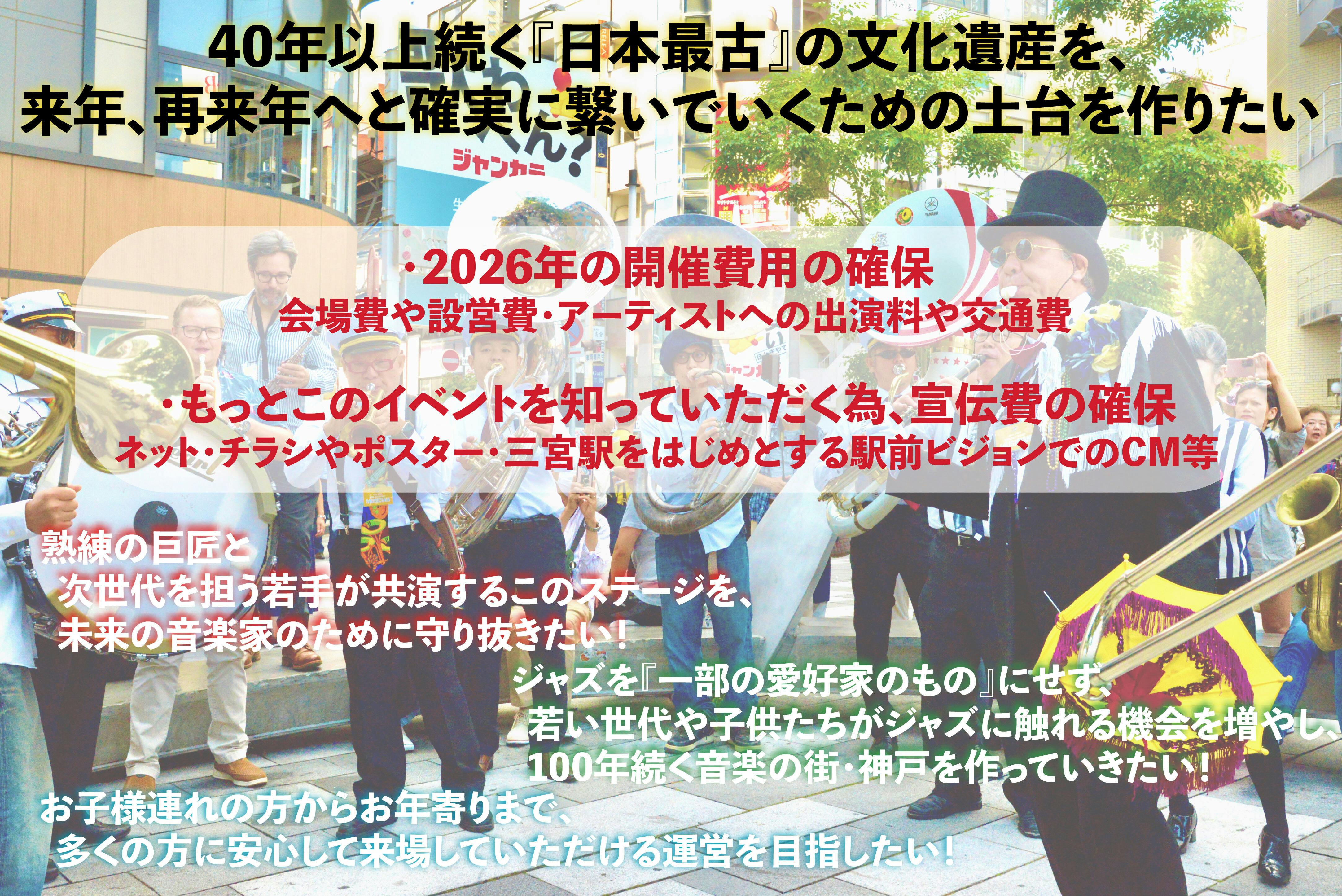 他にはない、神戸ジャズストリートでしか味わえない、この歴史ある素晴らしいイベントをこれからも続けさせてください。