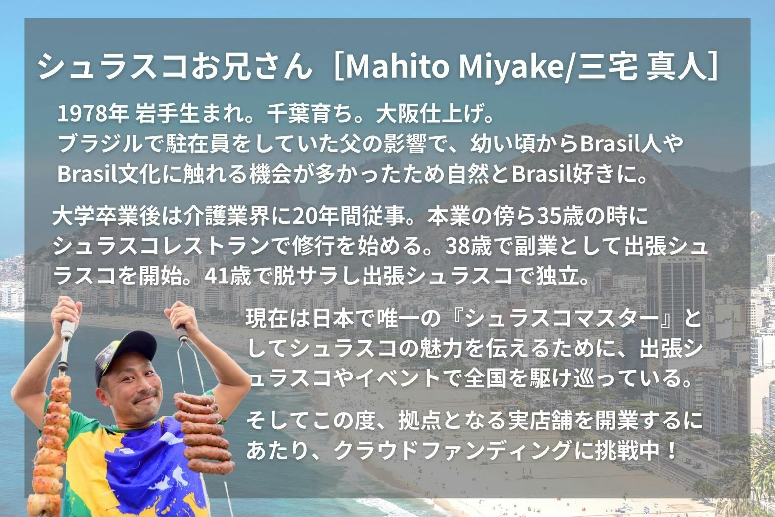 出張シュラスコやお祭りなどの露店営業を通じて出会ってくださった皆様から「シュラスコお兄さんの拠点があれば会いにいけるのに。」というお声を寄せていただけるようになりました。