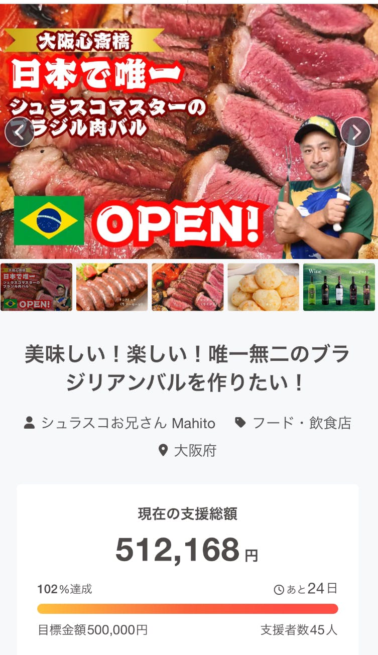 『日本で唯一』のシュラスコレストランの開業を目指します!
