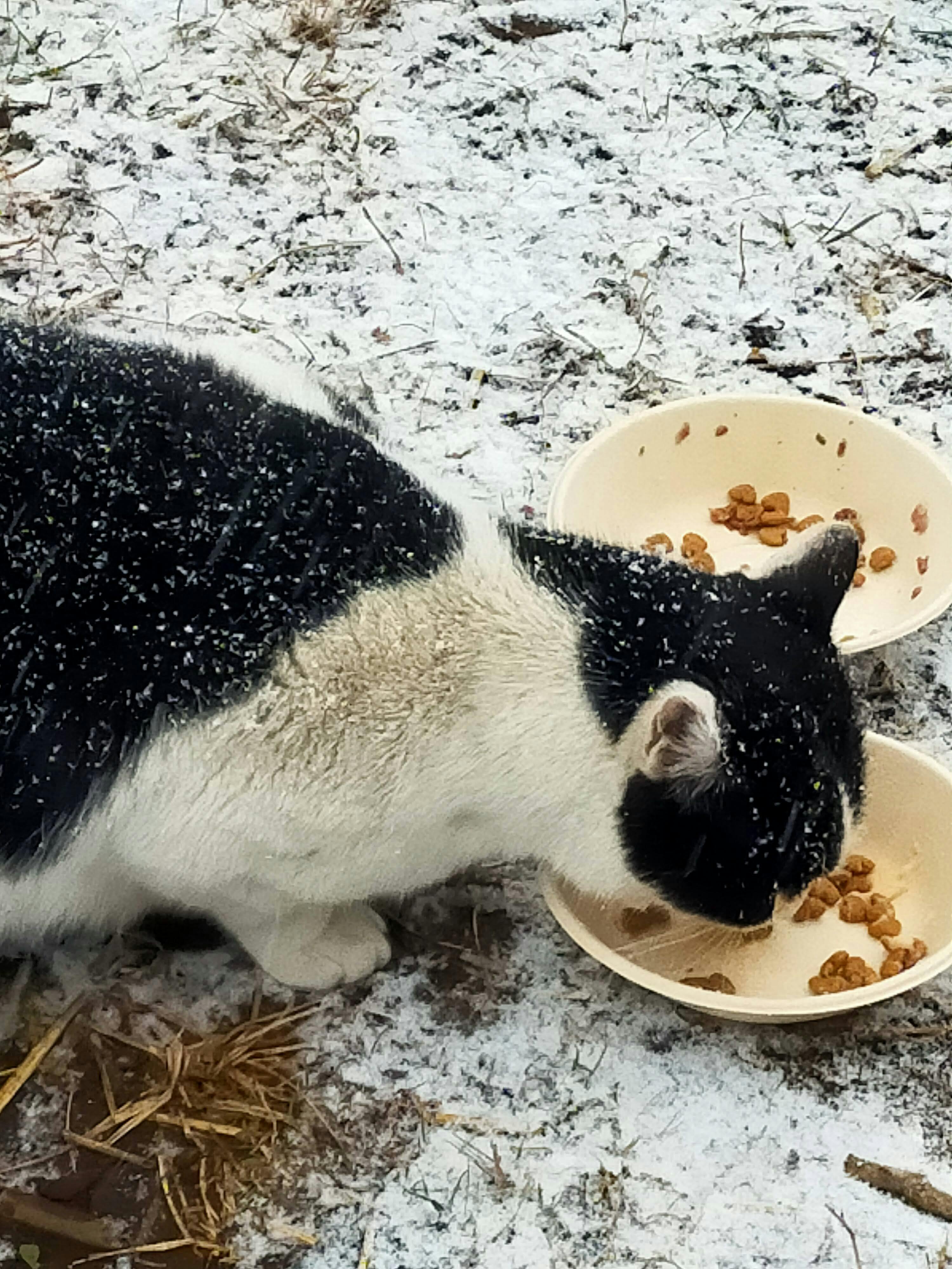 大雪の中頑張る地域猫達…