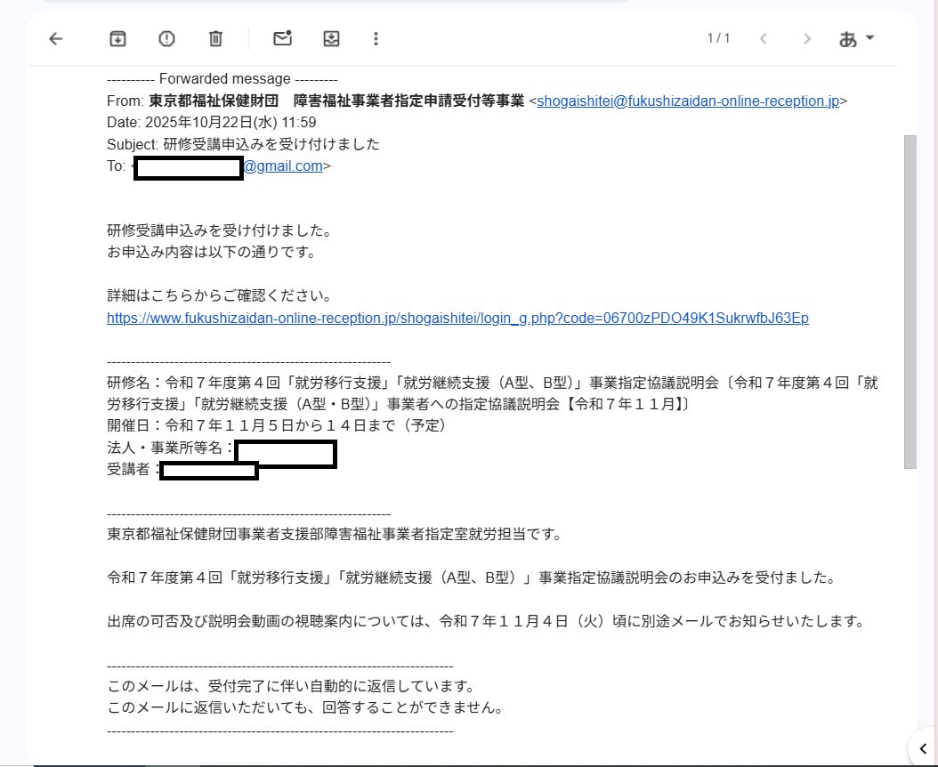 東京都福祉財団申請中の進捗状況