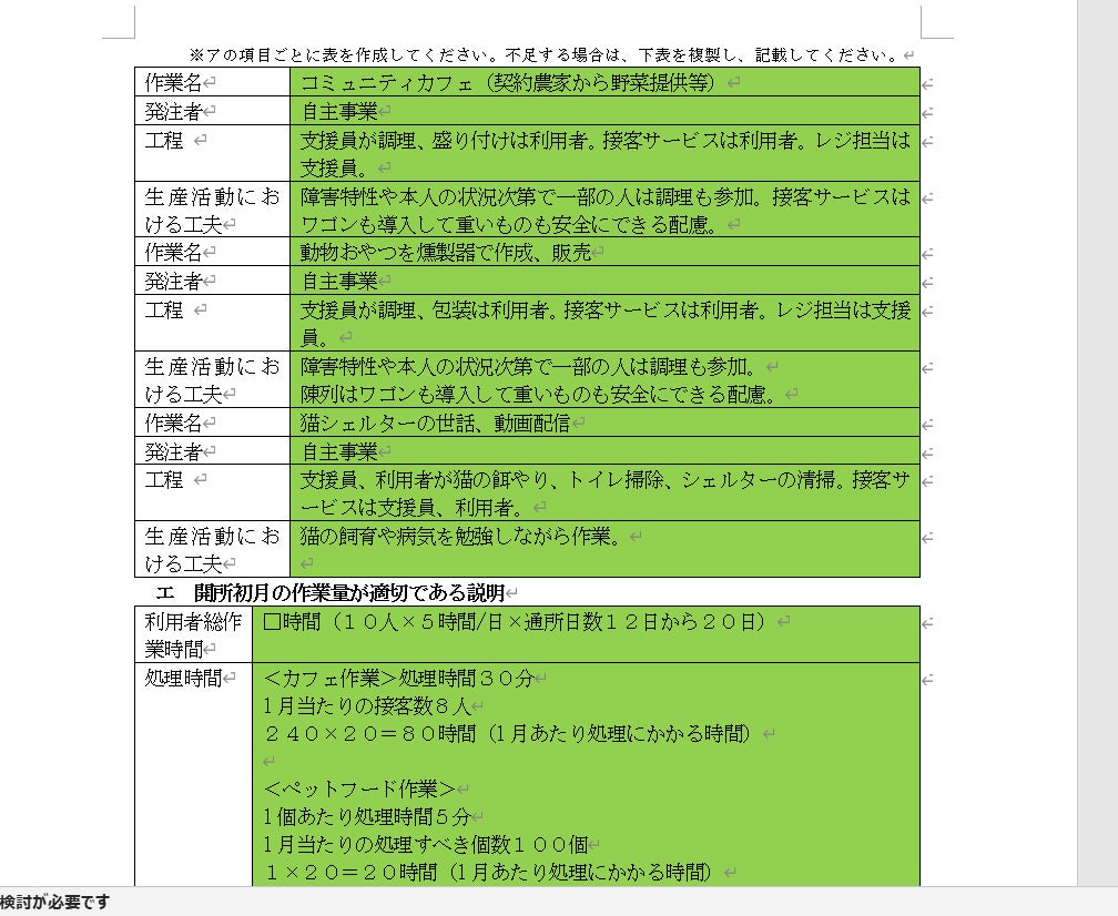 ※材料費の仕入の状況で事業内容が変更になる場合が有ります。