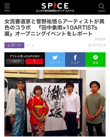 女流書道家、田中象雨が10人のARTISTsと異色のコラボレーション!