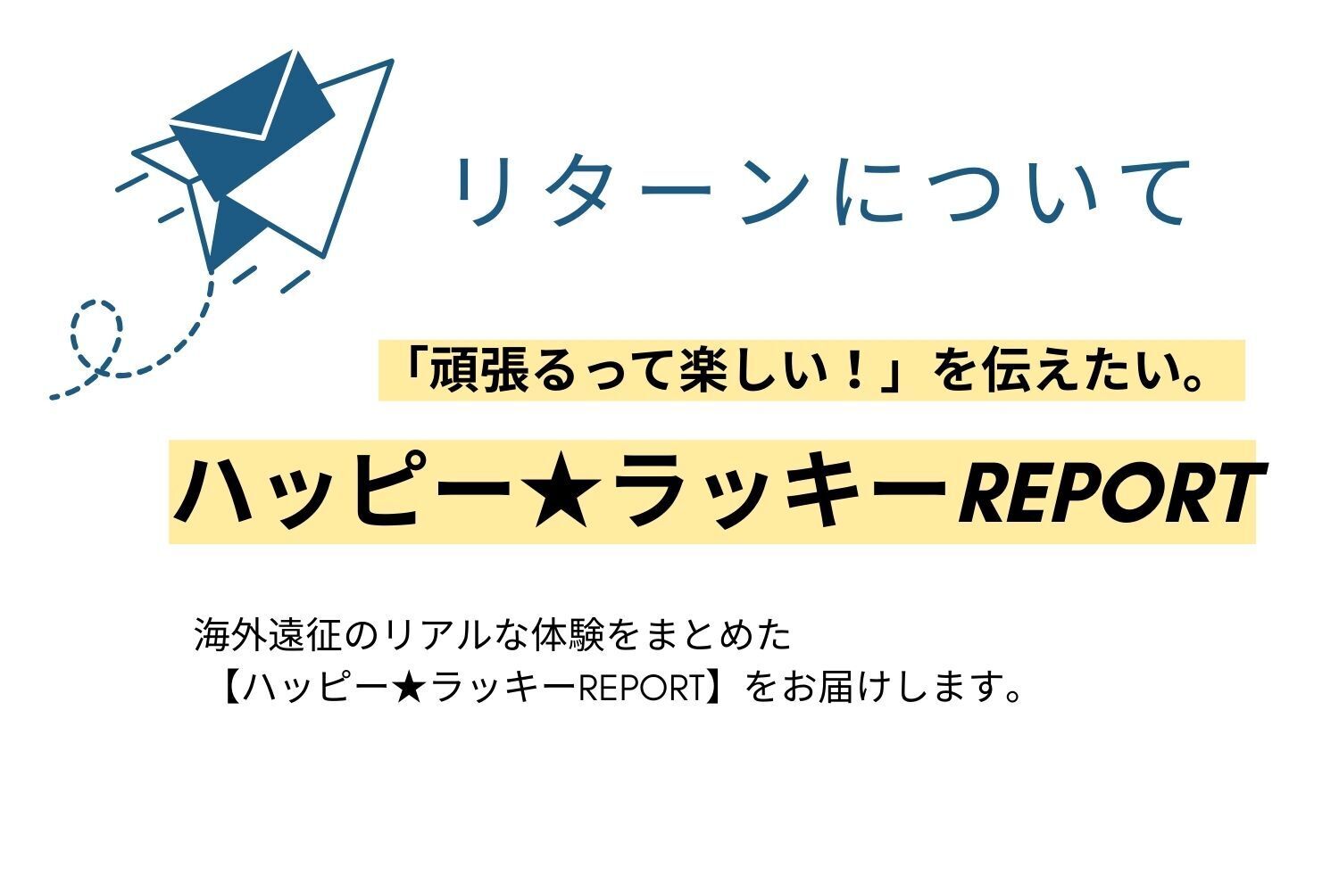 本プロジェクトのリターンとして、海外遠征のリアルな体験をまとめた【ハッピー★ラッキーREPORT】をお届けします。