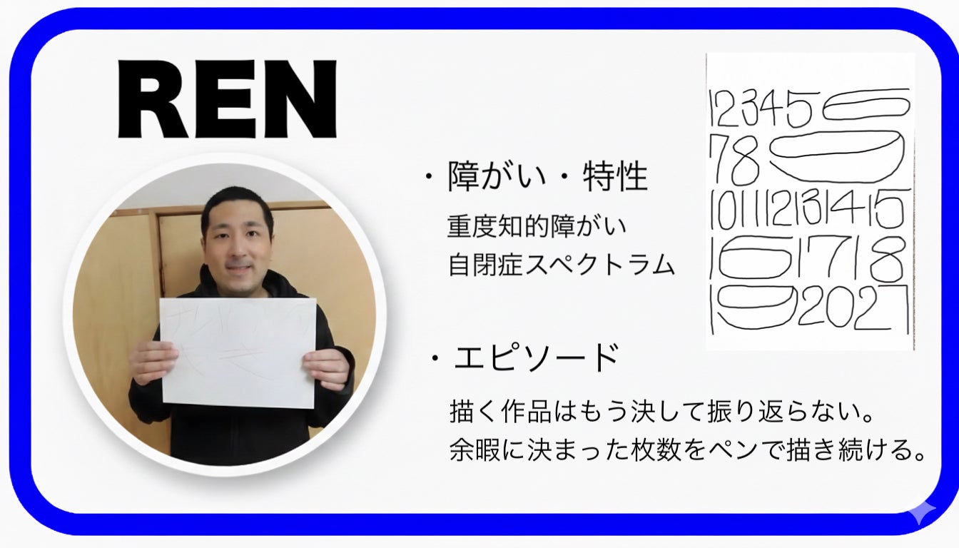そんな私にとって彼の作品に関わる活動をしているとき、大変だった過去を思い出しながらも、彼を近くに感じ幸せだなって感じる。廉は私の推しなのだ!その作品を「いいね」とか「力がもらえます」と言ってくれる人がいるのだから続けない理由などない。廉がどんな思いで暮らしているのか親にもわからない、でも彼の表現するものを見ていると、「自閉症に生まれて分からないことも沢山あるし、生きにくいなって思うけど、そんなに人生母さんが心配するほど悪くもないよ」と言っている気がするのです。