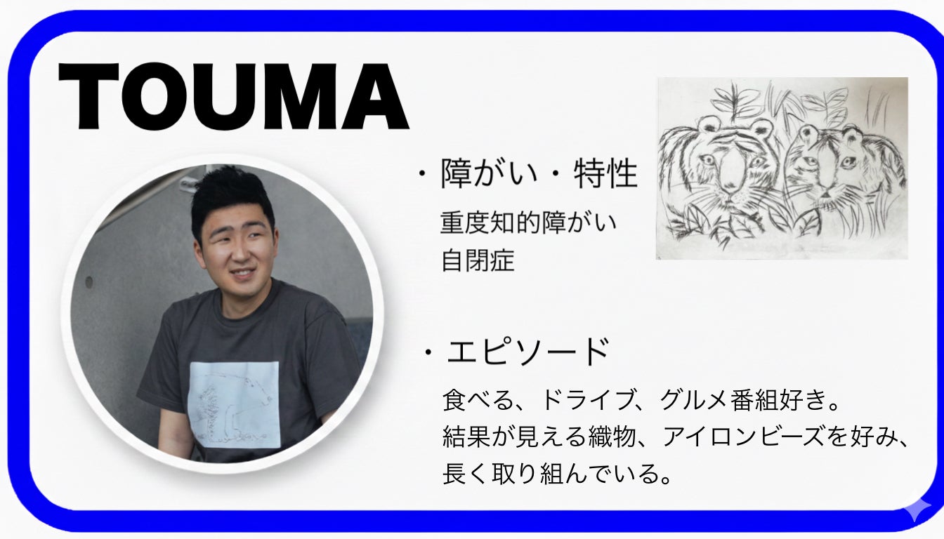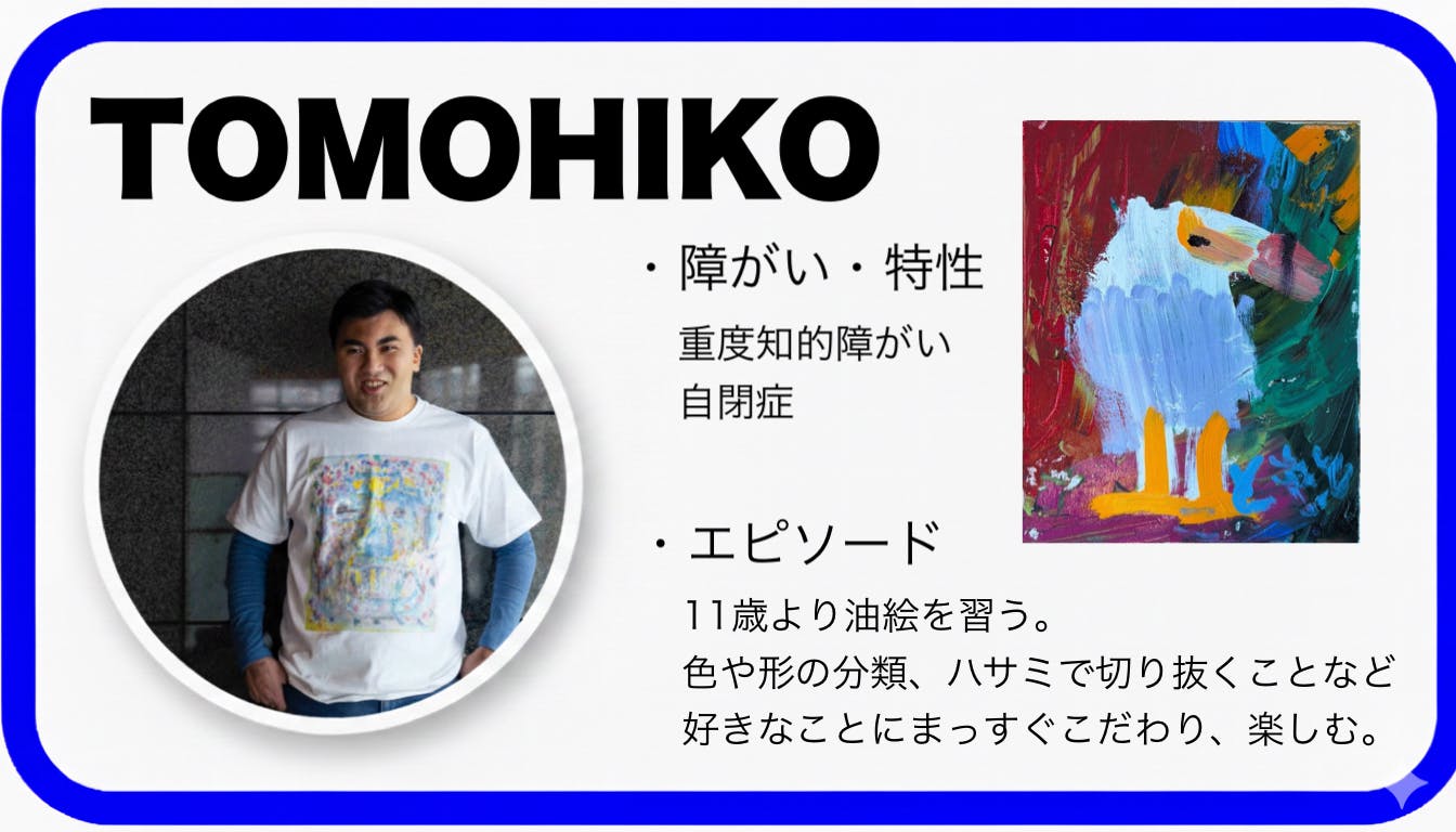 内容としてはAoに所属する自閉症アーティストの作品を定期的に美術館でアートを展示したり、Tシャツを中心にアートをグッズ化。