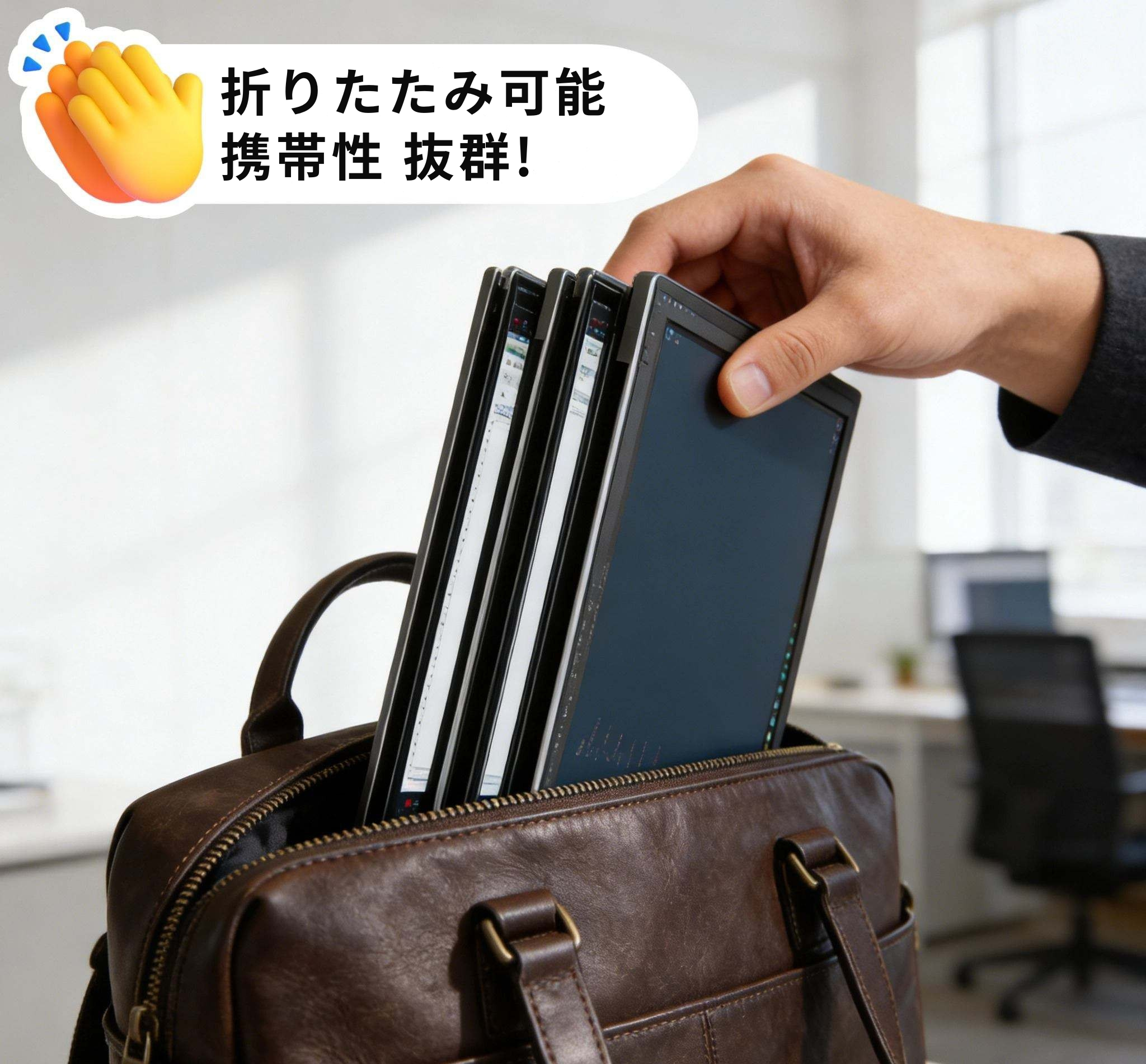 2026/04/06 19:00据え置きモニターは便利ですが、外に持ち出せません。一方でTriCreateは、折りたたみ式だから持ち運びにも対応。ノートPCユーザーの悩みは、外出先で作業効率が落ちてしまうこと。でもTriCreateがあれば、移動先でもいつものように画面を広く使えます。オフィスでも、自宅でも、外でも。作業環境を妥協しなくていい。それがTriCreateです。 もっと見る