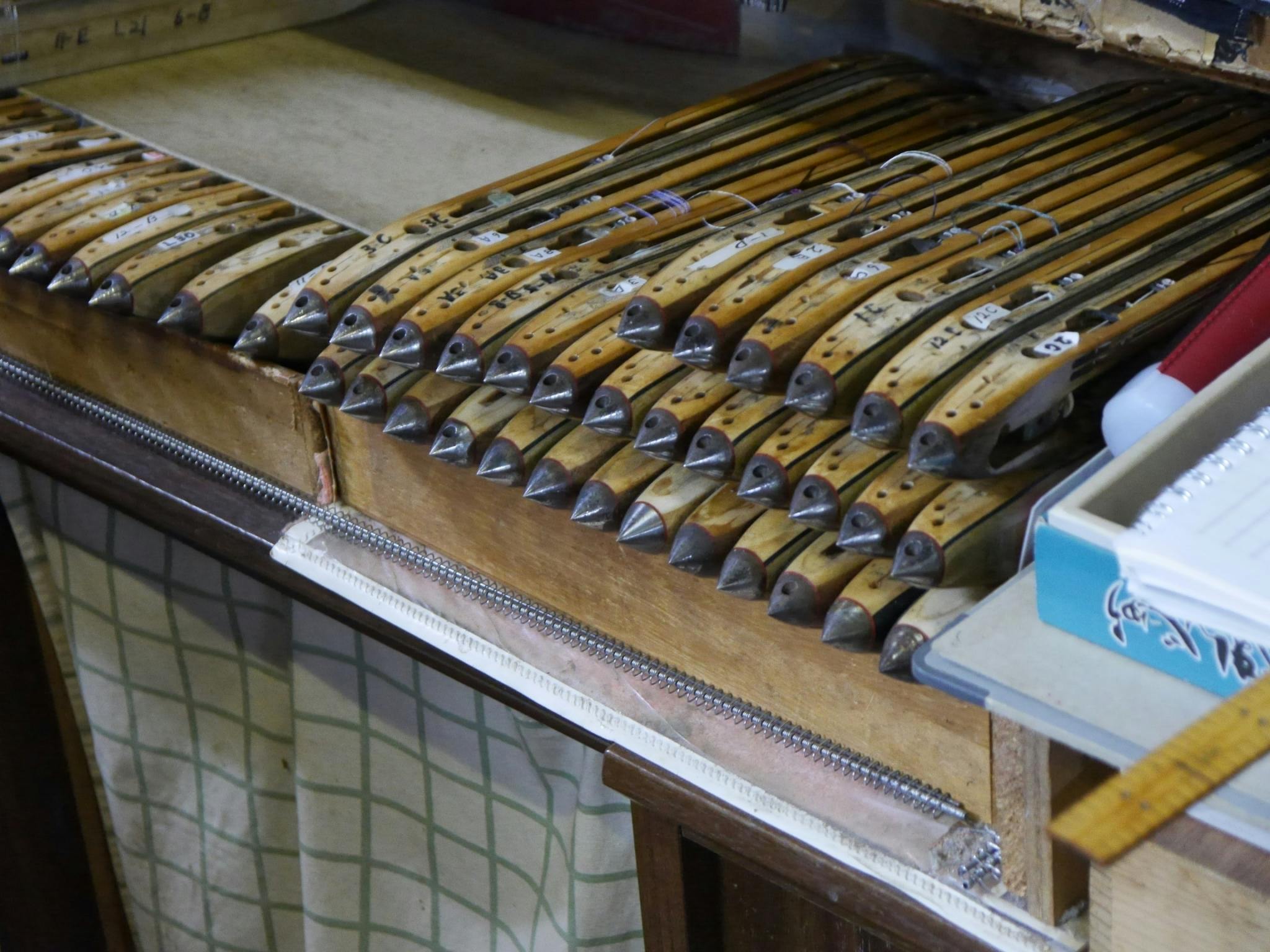 現在稼働している力織機の多くは半世紀ほど前に製造されたもので、すでにメーカーは製造を終了し、交換部品の入手は年々困難になっています。