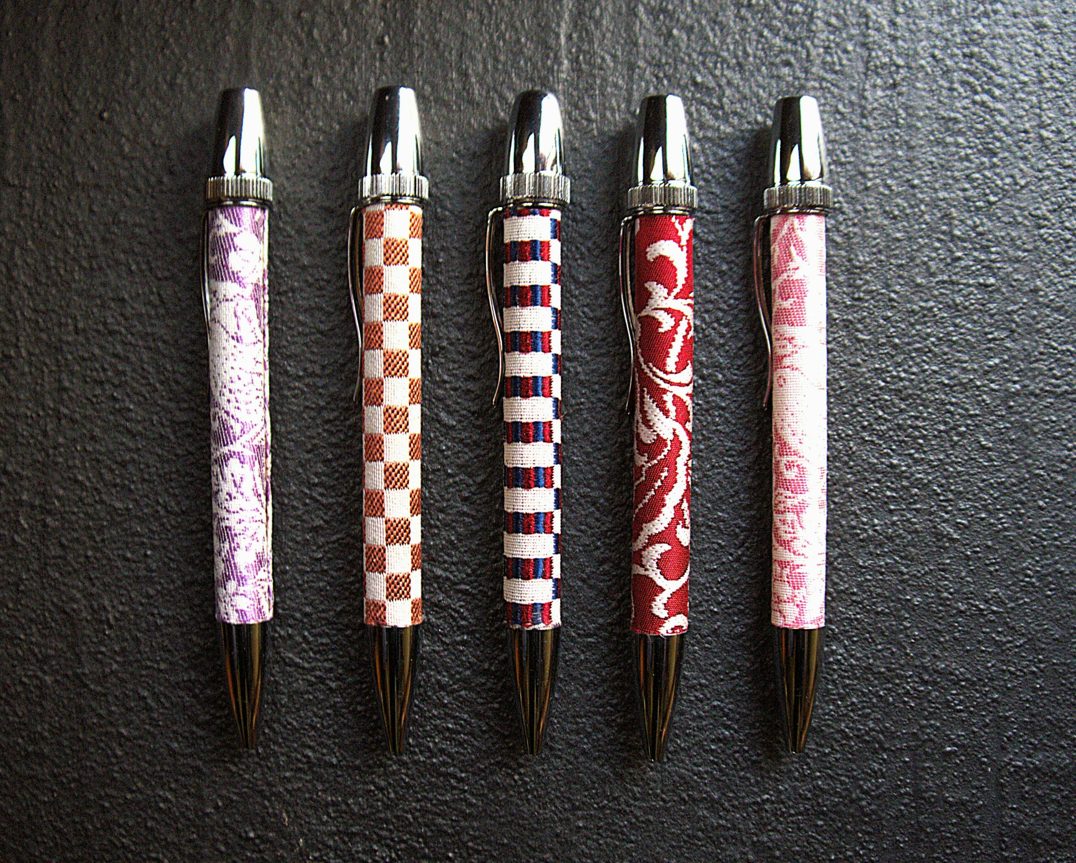 ビジネスシーンでも使える、西陣織を巻いた高級ボールペンです。握るたびに指先に伝わる絹の感触と、目を引く美しい文様。「これ、西陣織なんです」という会話のきっかけにも。