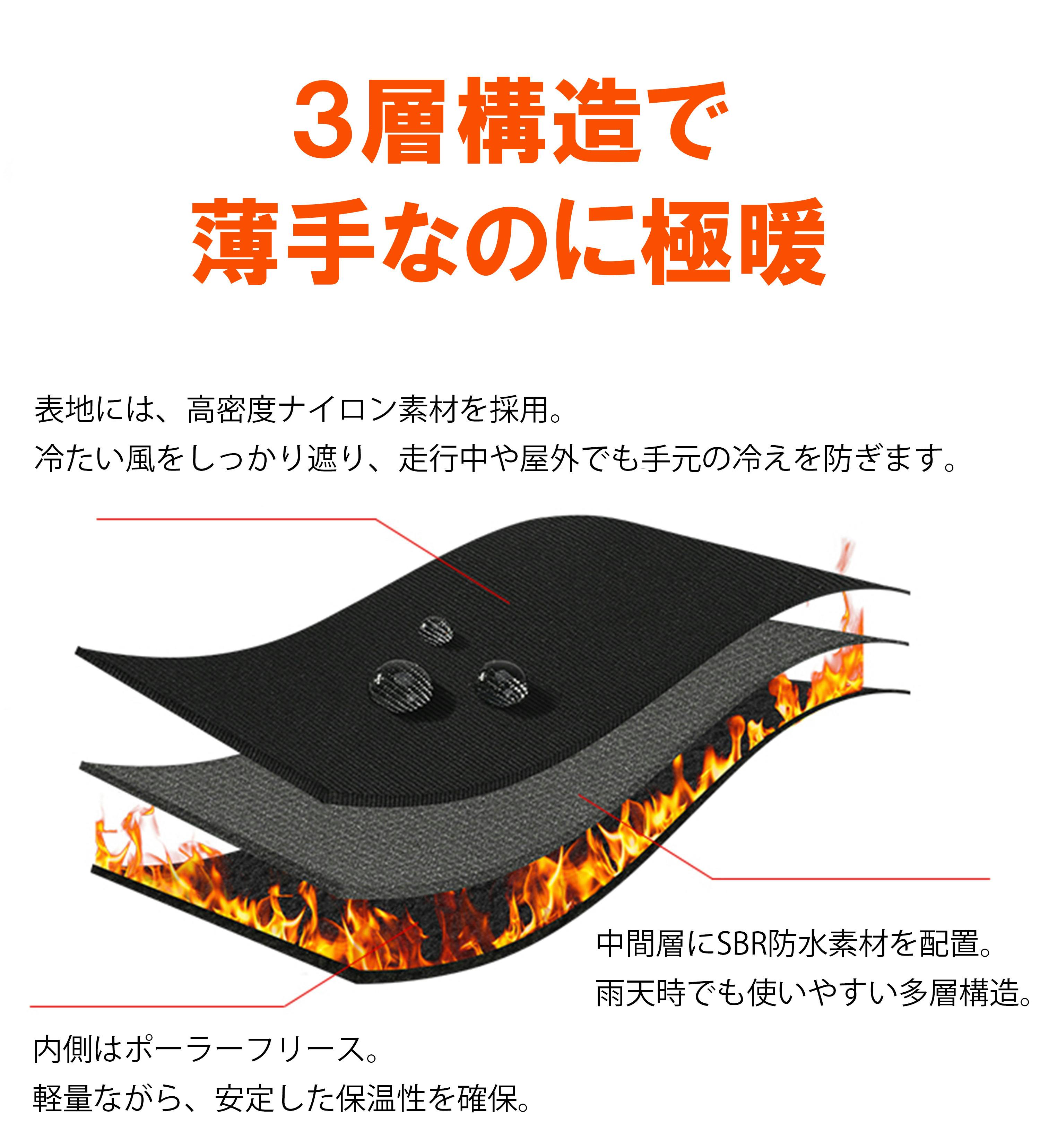 毎日の通勤や通学、外出時の移動中はもちろん、自転車やバイクに乗るときの手元の操作にも役立ちます。荷物の持ち運びやスマホ操作など、日常のちょっとした動作もスムーズ。屋外での作業や、アウトドア・キャンプなどのシーンでも使いやすく、幅広い場面で活躍する手袋です。