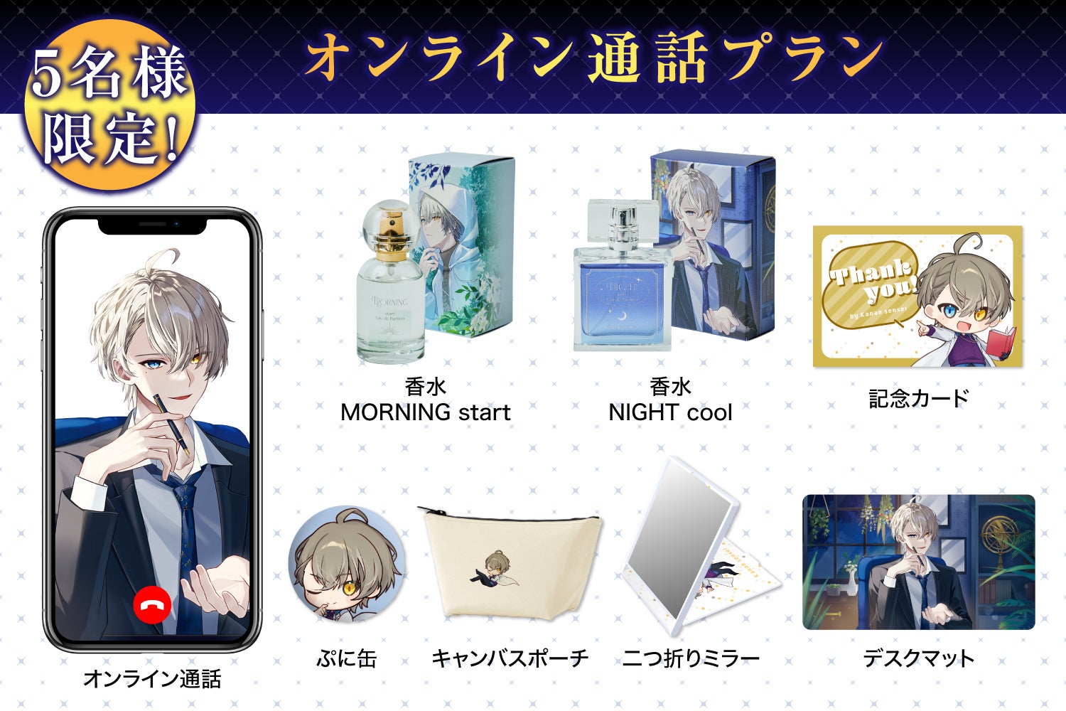 オンライン通話、香水2種、グッズがゲットできる豪華なラインナップです♪