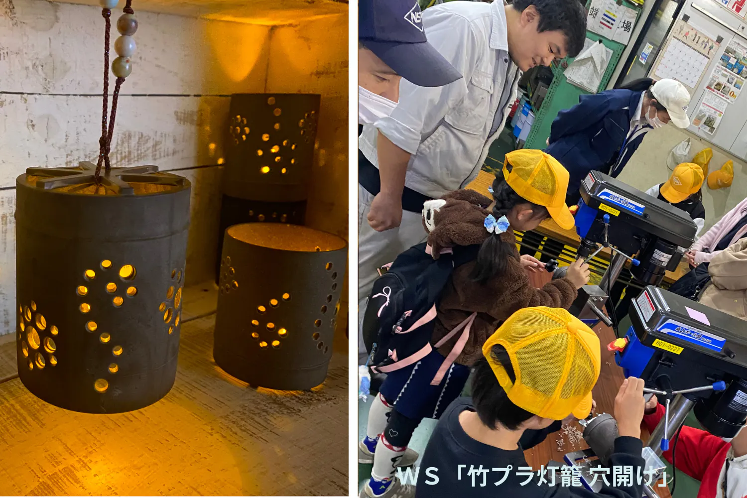 <ワークショップ 竹プラ灯籠穴あけ体験>
