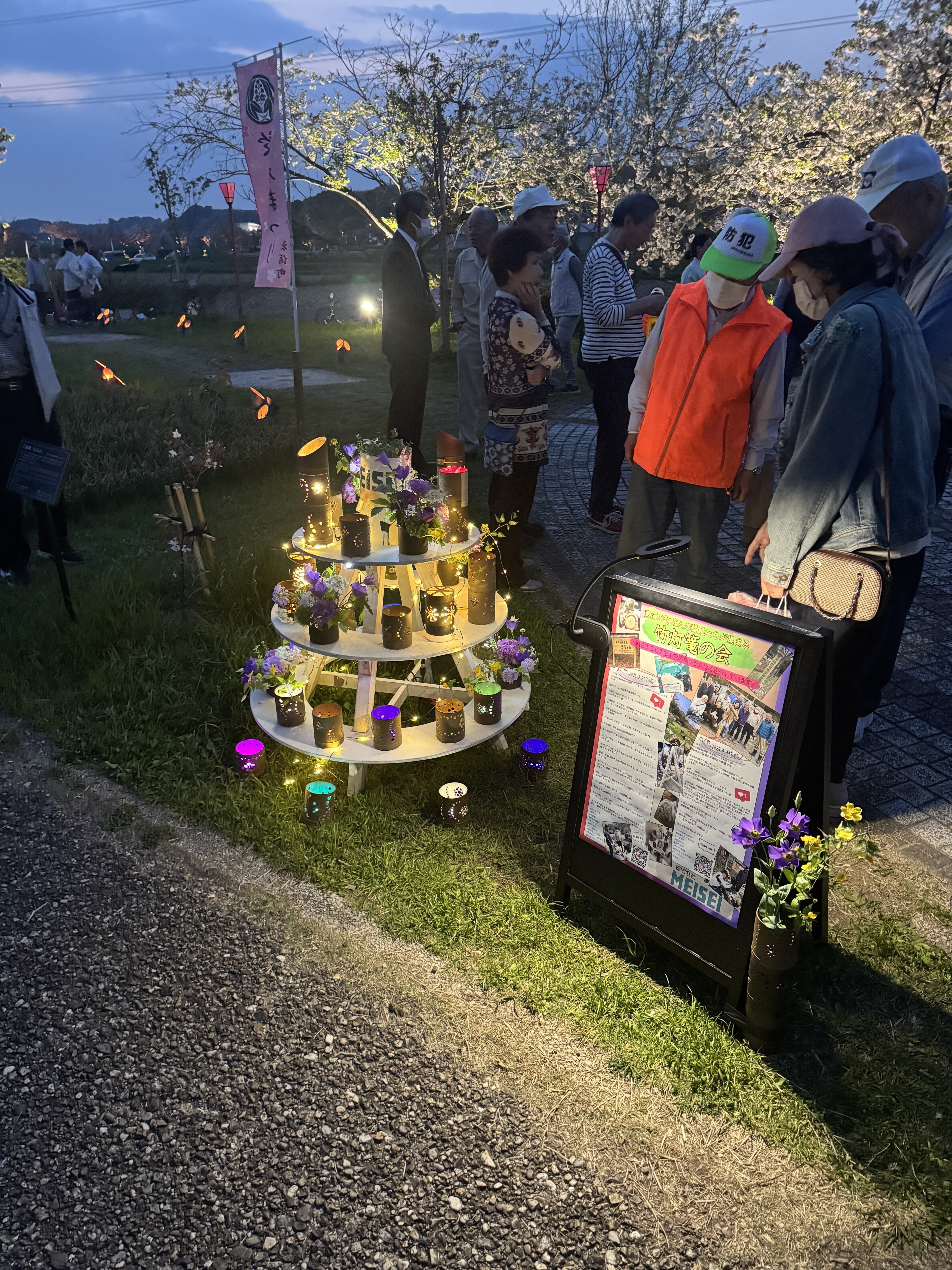 昨年「東浦竹灯篭の会」の皆さまと知り合うことができ「夜桜と竹灯篭宵祭り」に初めて参加させていただきました。