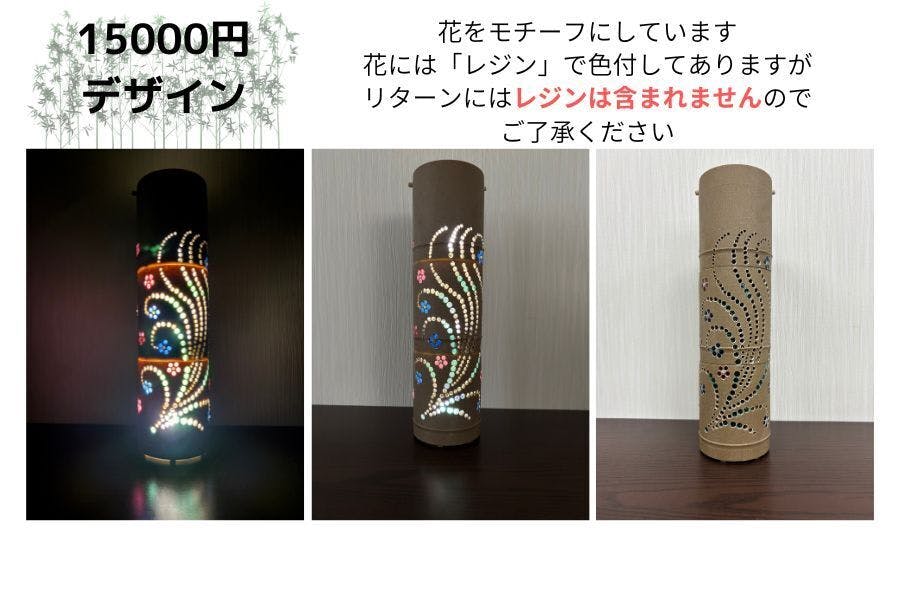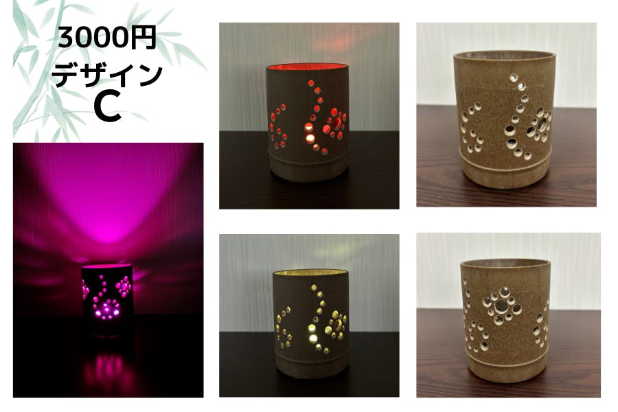 リターンの写真の竹灯籠に使用しているライトは、ダイソーの300円商品のカラーライトです。