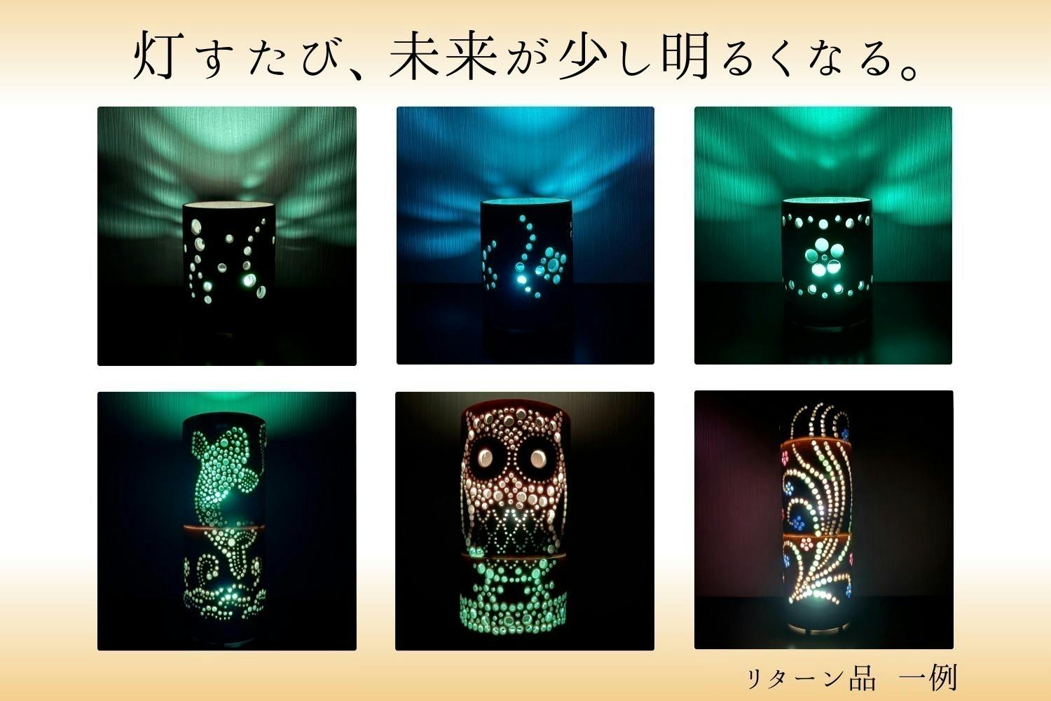 リターンの写真の竹灯籠に使用しているライトは、ダイソーの300円商品のカラーライトです。
